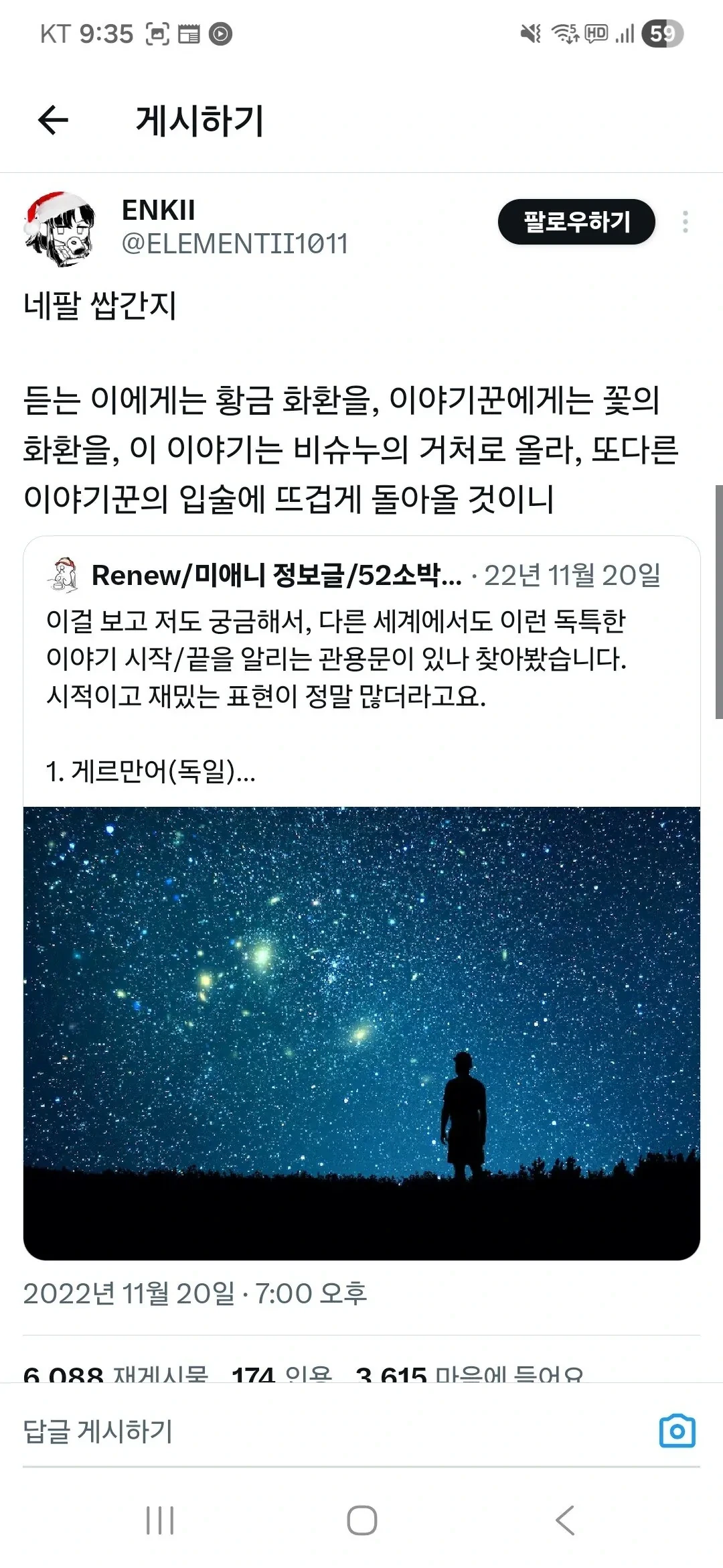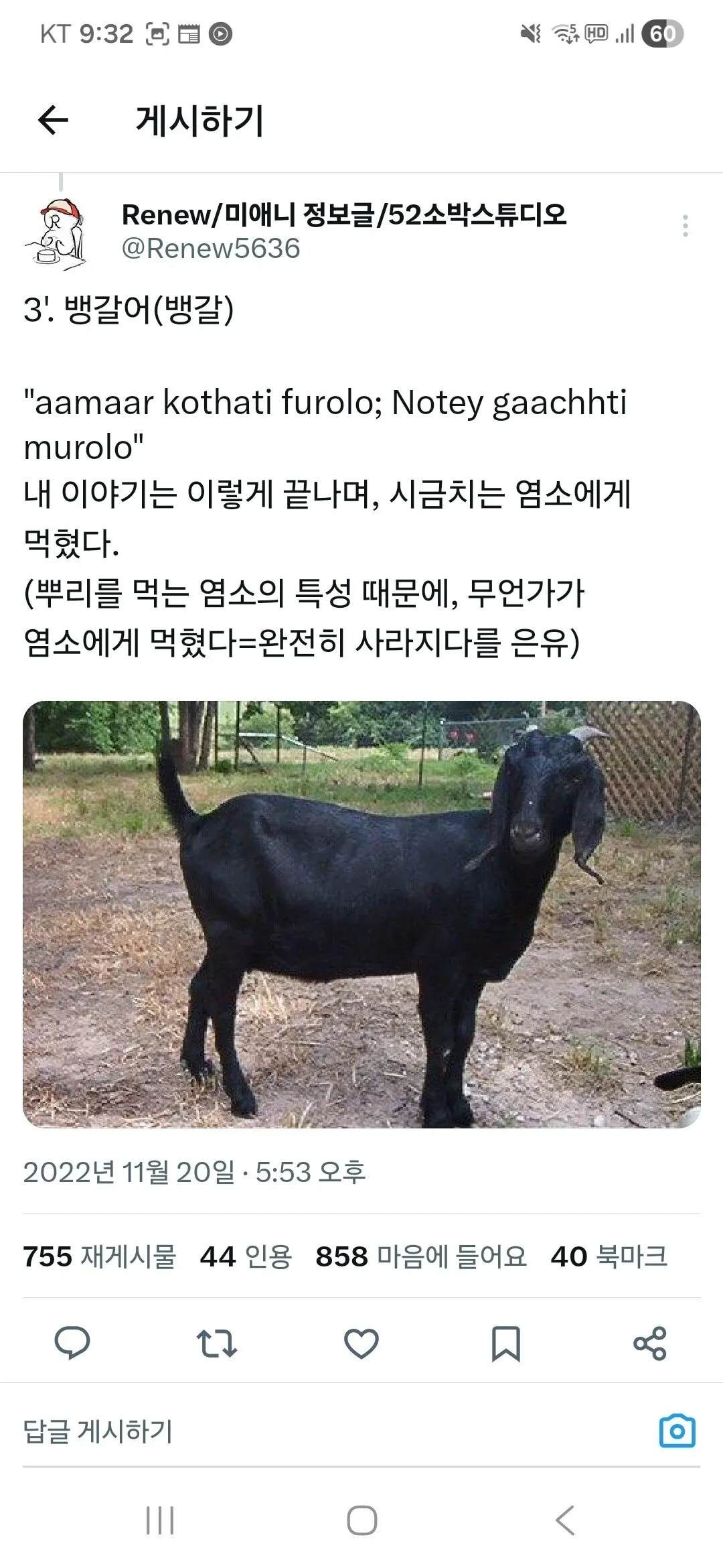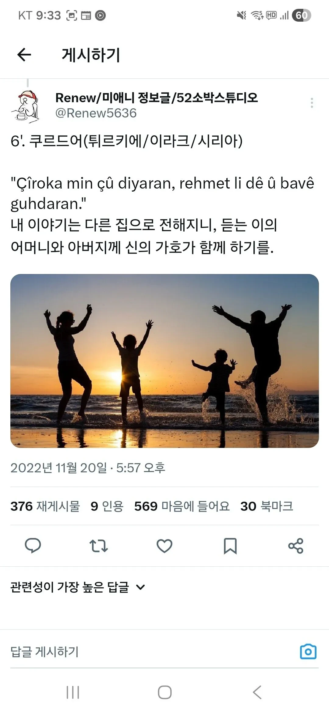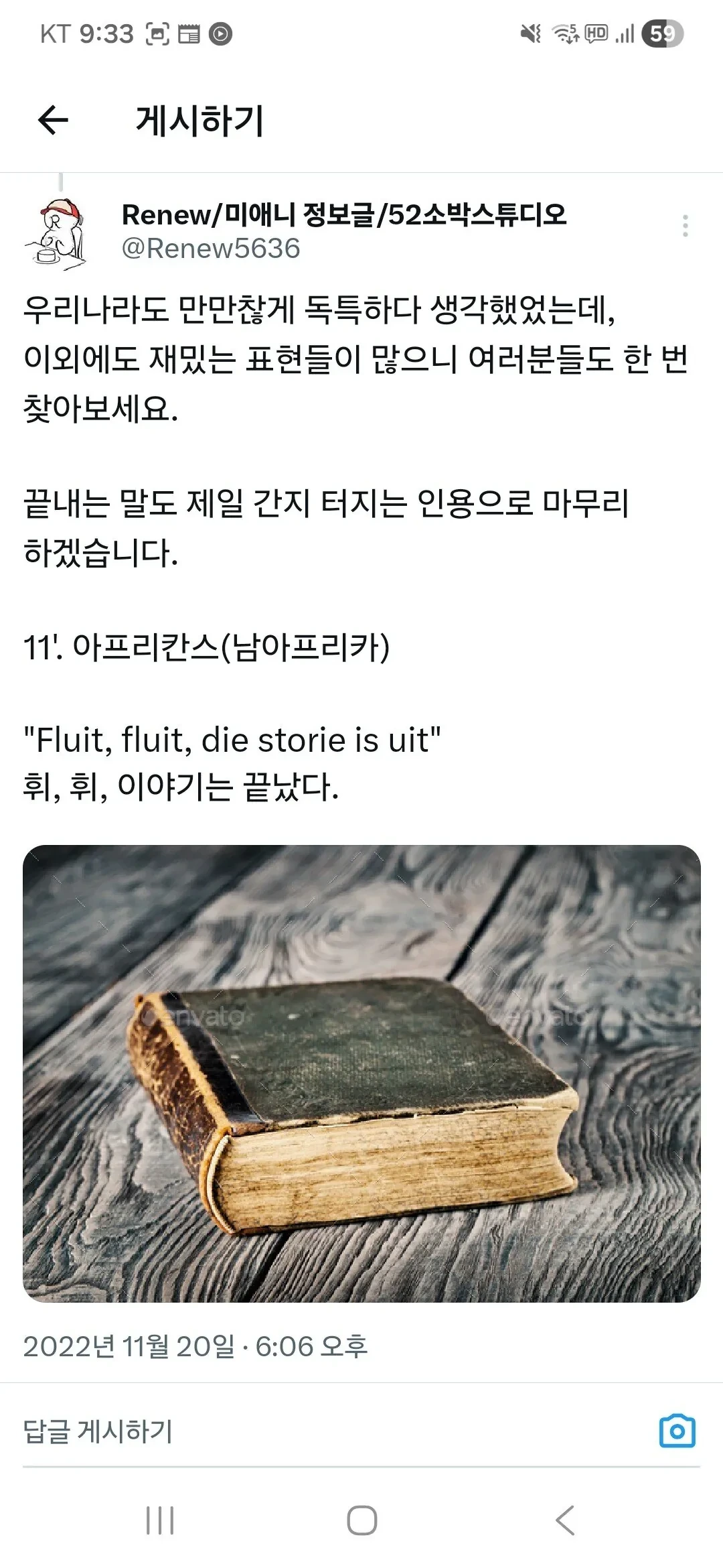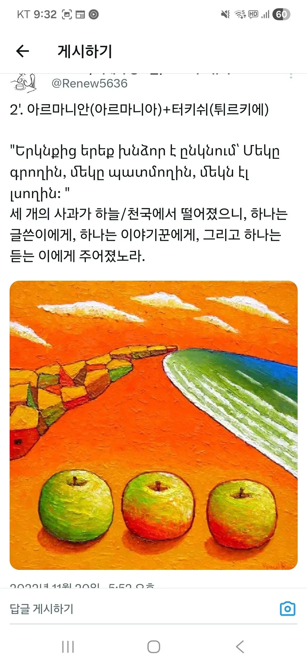 [흥미돋]세계 각국의 동화와 민담에서 이야기를 마치는 문장들 작성자흥미돋는글|작성시간26.01.05|조회수6,695 목록 댓글 2 글자크기 작게가 글자크기 크게가 출처: https://x.com/Renew5636 다음검색 현재 게시글 추가 기능 열기 북마크 공유하기 신고 센터로 신고 댓글 댓글 2 댓글쓰기 답글쓰기 댓글 리스트 작성자단항•음월 | 작성시간 26.01.05 네팔 맘에든다 작성자땀배달기 | 작성시간 26.01.05 와 사과 세개 멋지다… 한국은 오래오래 행복하게 잘 살았답니다 이런건가 댓글 전체보기
