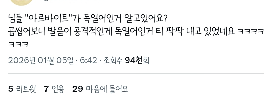 작성자All Hail the Queen 작성시간 26.01.05 심지어 아르바이트는 독일에서 일반 직장임. 독일어로 우리같은 아르바이트는 Job이야ㅋㅋㅋ part-time job에서 왓나봄