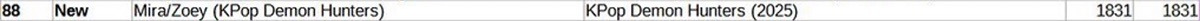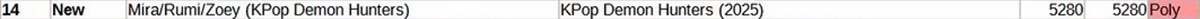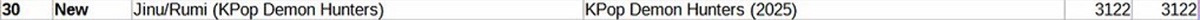 작년 하반기에 나왔음에도 불구하고 케데헌이 무려 20위 안에 NEW로 노미되는 기염을 토함