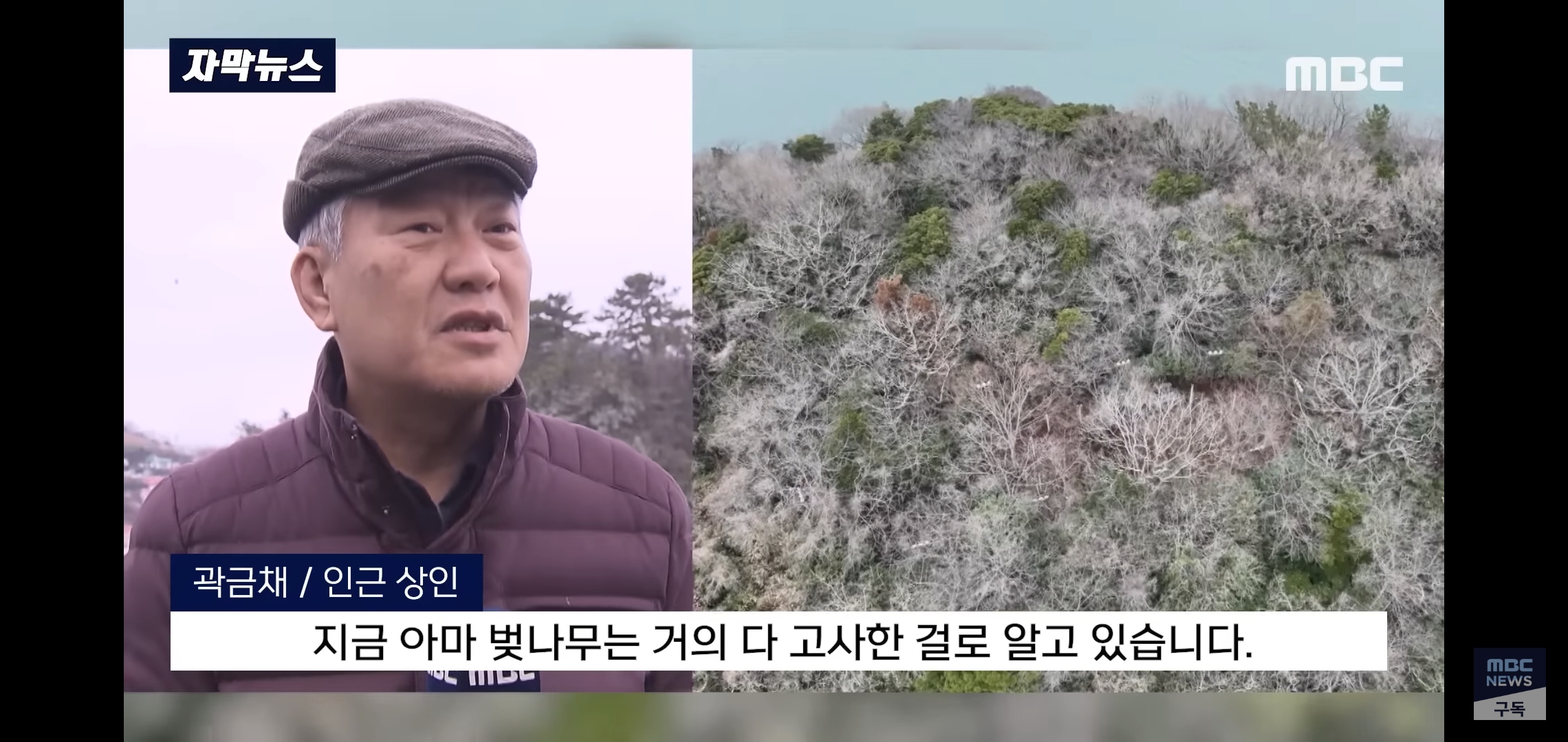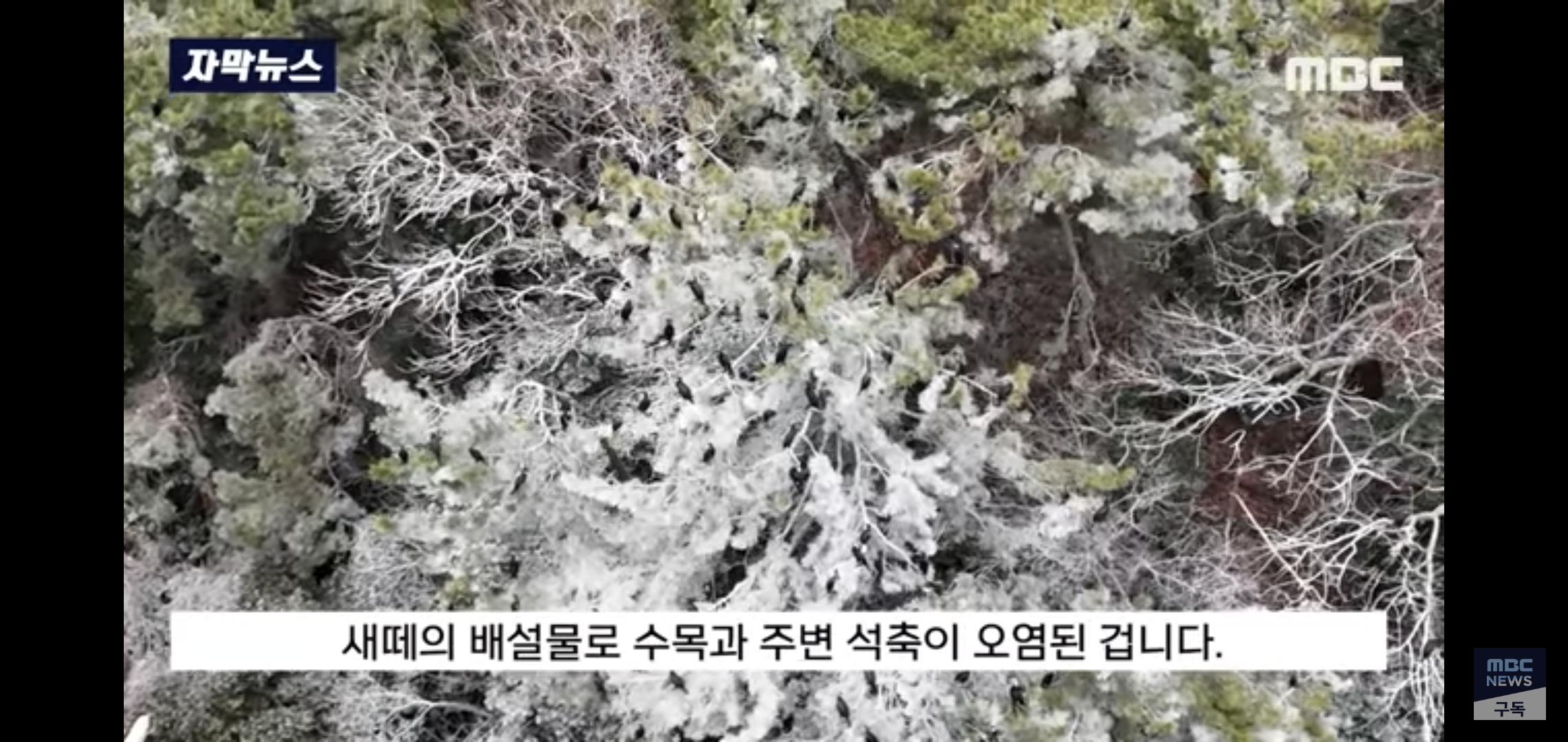 배설물 과다로 인한 수목 백화현강으로 나무들이 고사하는 것과