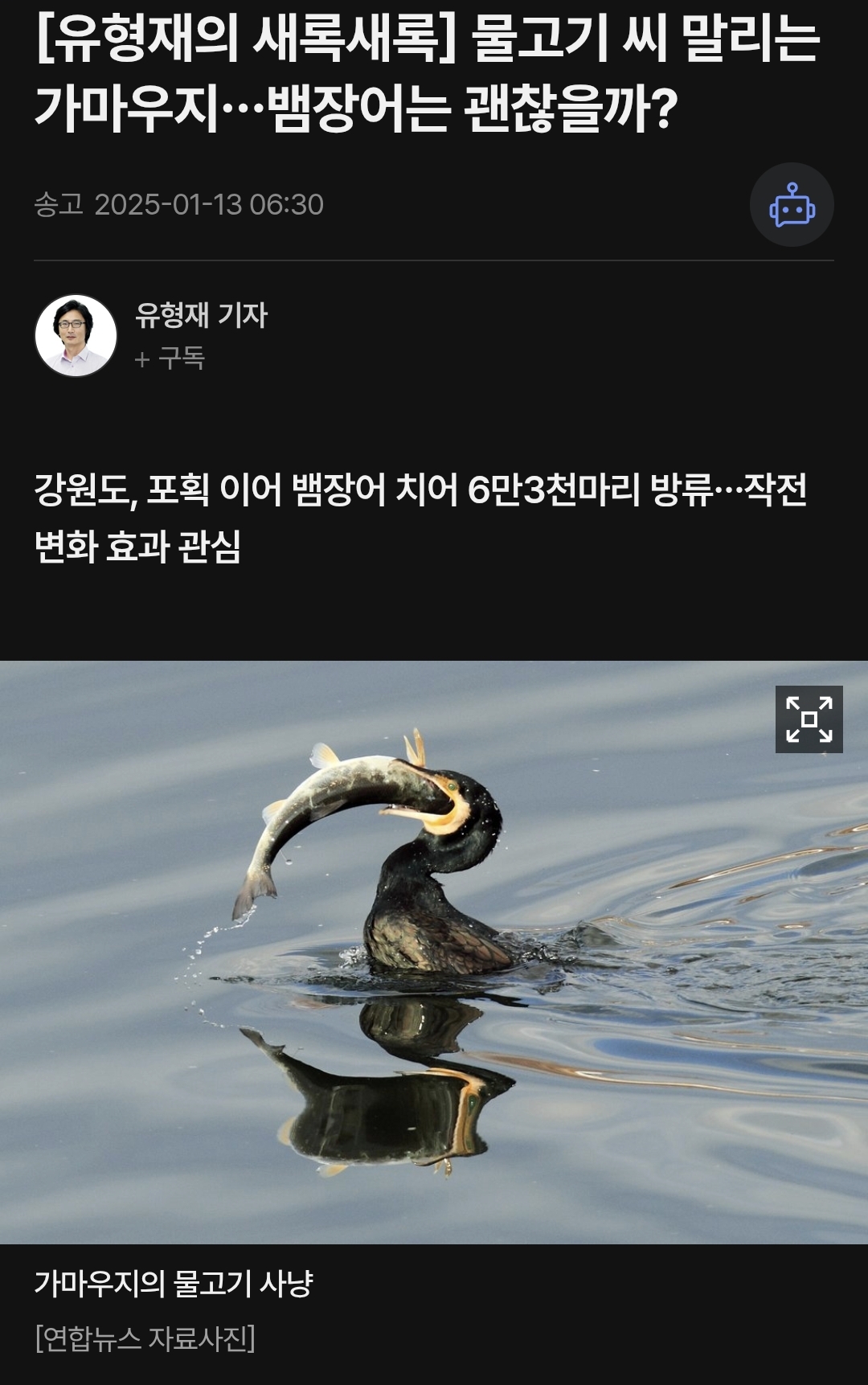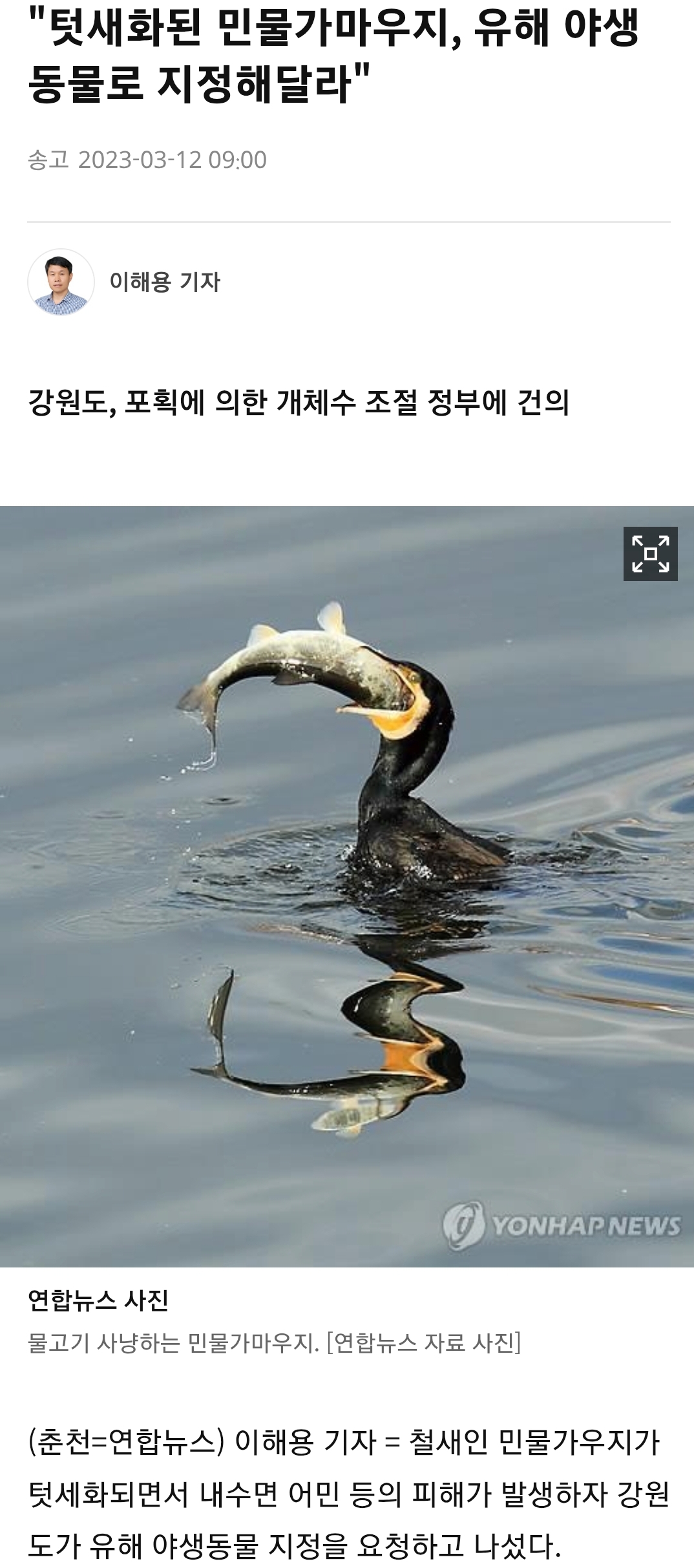 민물가마우지를 유해 야생동물로 지정하더라도