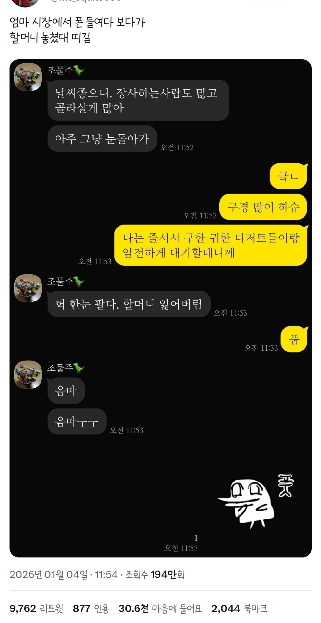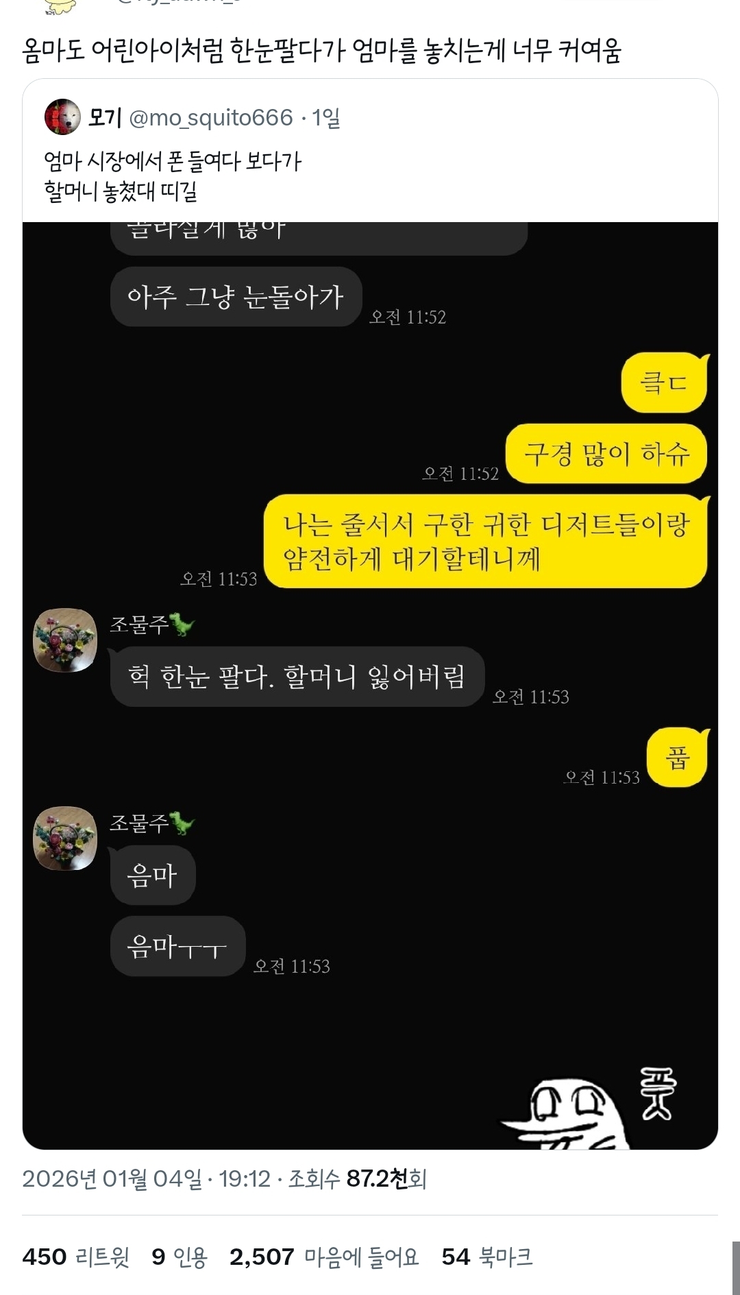 [흥미돋]엄마 귀여운점.twt 작성자카이지|작성시간26.01.05|조회수46,047 목록 댓글 42 글자크기 작게가 글자크기 크게가 출처: https://twitter.com/mo_squito666/status/2007646771951075793?t=ysOHARnHkz0v6H3X0Aeb6Q&s=19https://twitter.com/mo_squito666/status/2007646771951075793?t=ysOHARnHkz0v6H3X0Aeb6Q&s=19https://twitter.com/fly_dawn_o/status/2007756935475696124?t=ysOHARnHkz0v6H3X0Aeb6Q&s=19 다음검색 현재 게시글 추가 기능 열기 북마크 공유하기 신고 센터로 신고 댓글 댓글 42 댓글쓰기 답글쓰기 댓글 리스트 작성자안녕하시구랴 | 작성시간 26.01.05 음마 ㅠ ㅋㅋㅋㅋㅋ아 귀여워 작성자행운의°여신 | 작성시간 26.01.05 너무 귀여위셔ㅜㅋㅋㅋ 작성자R=VD2026성공할여자 | 작성시간 26.01.05 음마 음마 ㅜㅜ << 킬포 ㅋㅋㅋㅋ ㅋㅋ 작성자쟝포니 | 작성시간 26.01.05 음마 < 울지않음음마ㅜㅜ < 욺이 변화가 너무 ㄱㅇㅇ 작성자샛강역 | 작성시간 26.01.06 음마 음마 ㅜ ㅜ 댓글 전체보기