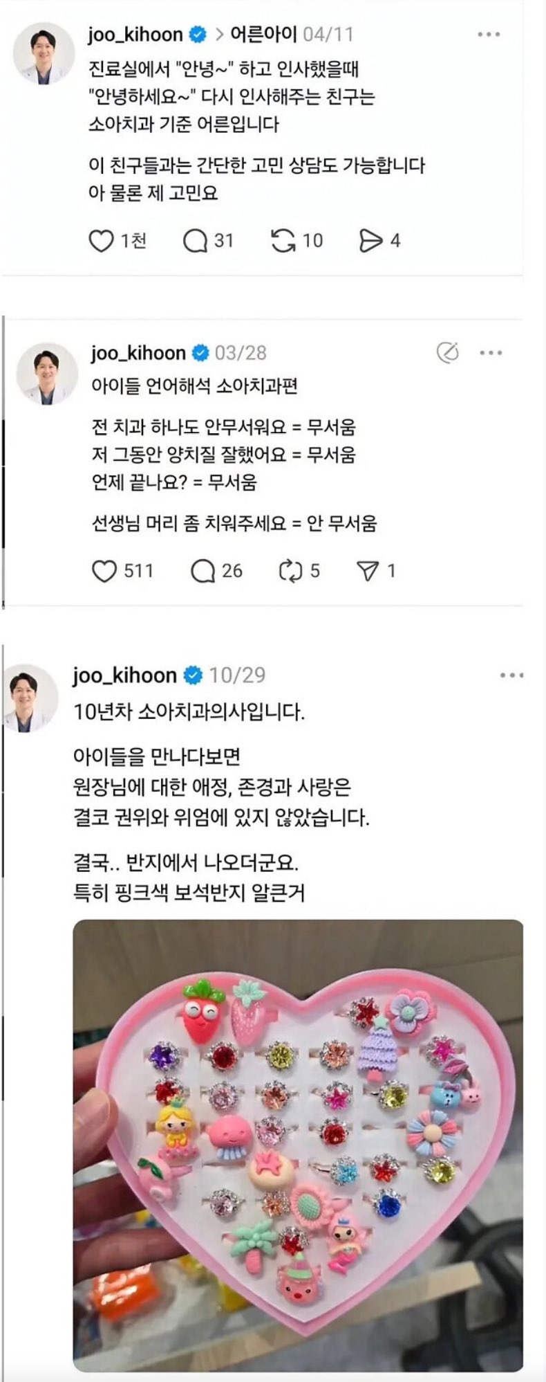 나는 전애 검진하러 온 애가 있었는데 쌀알 두개 난 애기였음 끝나고 잘했다고 반지 고르라고했더니 너무 어리니까 뭔지도 모르고 넋놓고 있어서 엄마가 골라서 끼워줬는데 애기가 주먹쥐고 있길래 어머니가 손가락 쫙 펴봐~~ 엄마 보여줘~!하면서 손가락 톡톡 건드렸더니 정말 반지낀 중지만 딱 펴서 엄마에게 중지를 날려드리더라,, 어머니랑 나랑 빵터짐ㅋㅋㅋㅋㅋ -