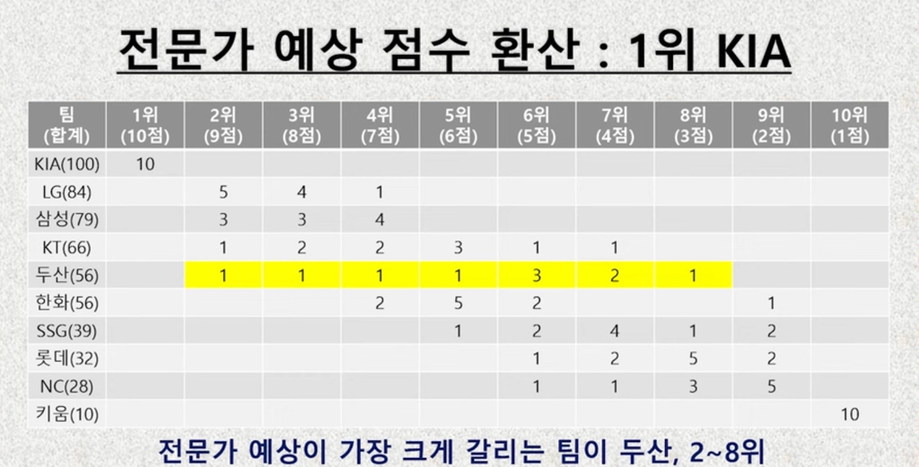 [흥미돋][야구] 작년 25시즌 시작 전 전문가 10인의 예상 순위 작성자죄송합니다겠냐고|작성시간26.01.05|조회수10,587 목록 댓글 26 글자크기 작게가 글자크기 크게가 출처: 여성시대 죄송합니다겠냐고작년 실제 순위1. 엘지2. 한화3. SSG4. 삼성5. 엔씨6. KT7. 롯데8. 기아9. 두산10. 키움진짜 순위는 까알.. 다음검색 현재 게시글 추가 기능 열기 북마크 공유하기 신고 센터로 신고 댓글 댓글 26 댓글쓰기 답글쓰기 댓글 리스트 작성자행운만가득하길 | 작성시간 26.01.05 흥 야알못들같으니 작성자뚀 니 살 | 작성시간 26.01.05 기아씨발아 작성자스노우핑 | 작성시간 26.01.05 작년에 저러고 8위해서 ai 예상한거보면 올해는 다 하위권 예상하던데ㅅㅂㅋㅋㅋ 작성자예쭈닝 | 작성시간 26.01.05 한화야 작성자쿠크다스 아이스크림 | 작성시간 26.01.05 롯데 쌰갈놈들아 댓글 전체보기