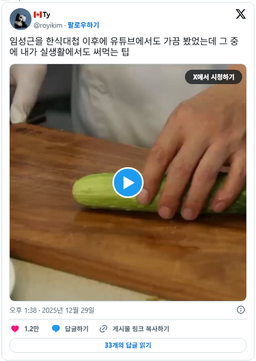 [스크랩] [흥미돋]임성근을 한식대첩 이후에 유튜브에서도 가끔 봤었는데 그 중에 내가 실생활에서도 써먹는 팁 작성자뚱쭝한 고양이|작성시간26.01.05|조회수26,407 목록 댓글 39 글자크기 작게가 글자크기 크게가 출처: 여성시대 야이개라스가 ㅁㅂ https://youtube.com/shorts/EgkTBM5G1Wc?si=bML6GF1R6gIwHk3a 다음검색 스크랩 원문 : *여성시대* 차분한 20대들의 알흠다운 공간 현재 게시글 추가 기능 열기 북마크 공유하기 신고 센터로 신고 댓글 댓글 39 댓글쓰기 답글쓰기 댓글 리스트 작성자조기화 | 작성시간 26.01.06 와 작성자마빡어택 | 작성시간 26.01.06 저..저렇게 빠르게 얇게 못 썰어서 붙지도 않던데요 ㅠㅋㅋㅋ 쩐다.. 작성자미쳐버려요 | 작성시간 26.01.06 대애박 작성자왓차욋차 | 작성시간 26.01.06 와 개꿀팁 작성자나로로루 | 작성시간 26.01.07 와오이대박이다 상상도못한방법 댓글 전체보기