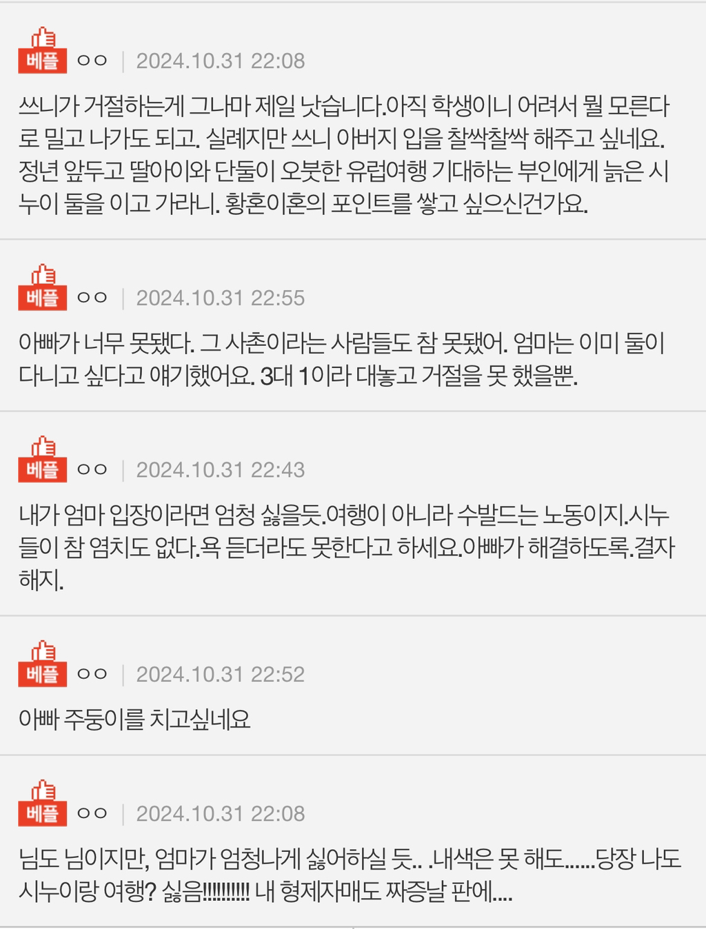 그냥 생각해 보겠다고 말씀드렸는데 엄마랑 저는 둘이서 다니고 싶지만 지금 분위기가 거의 거절하면 나쁜x 되는 분위기라..