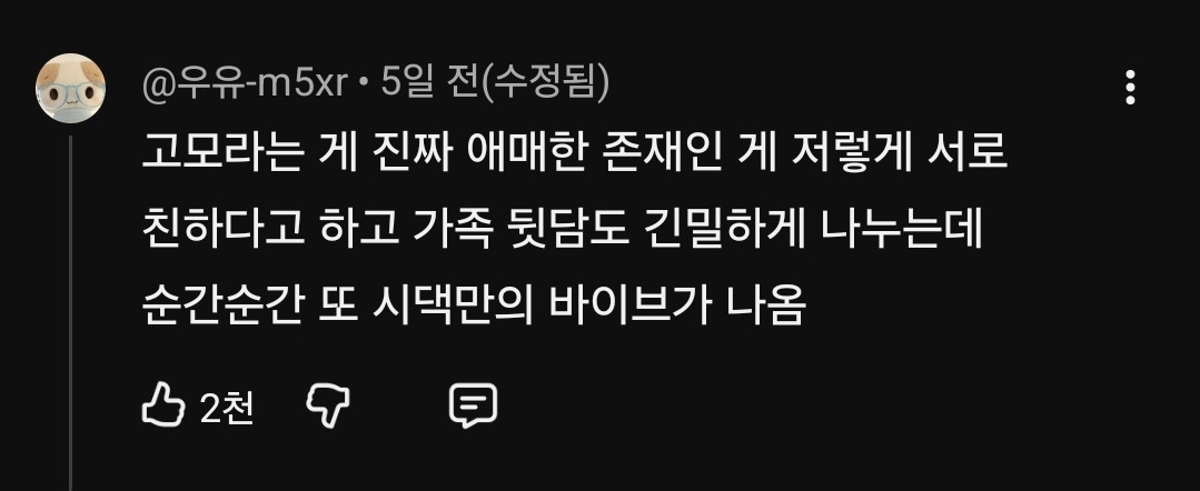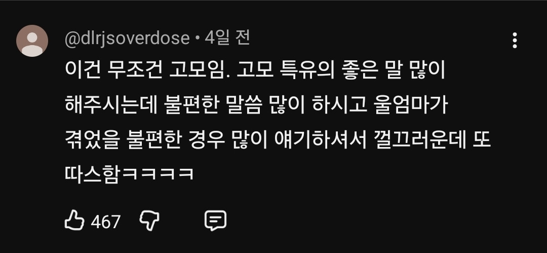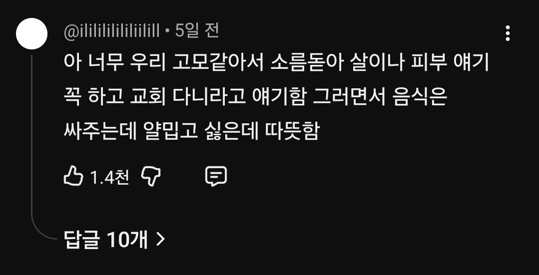 작성자홍시맛홍시 작성시간 26.01.07 진짜 우리고모같아서 소름 끼쳐ㅋㅋㅋㅋㅋ