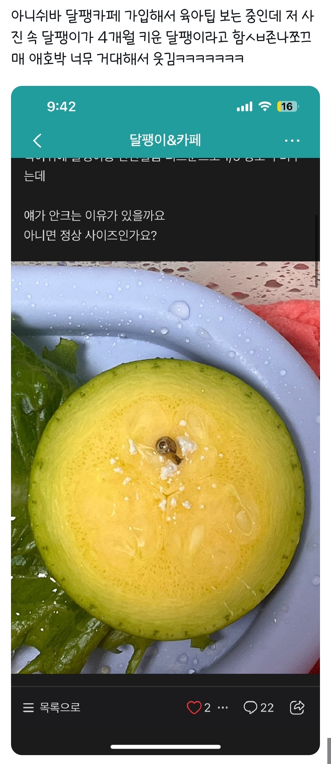 [흥미돋]4개월 기른 달팽이 작성자2738|작성시간26.01.06|조회수41,706 목록 댓글 22 글자크기 작게가 글자크기 크게가 출처: https://x.com/i/status/2008157527633175006 다음검색 현재 게시글 추가 기능 열기 북마크 공유하기 신고 센터로 신고 댓글 댓글 22 댓글쓰기 답글쓰기 댓글 리스트 작성자졸음방지 | 작성시간 26.01.06 팽이 진짜 행복하겠다 작성자앙버터소금빵 | 작성시간 26.01.06 저게 다큰거같은뎈ㅋㅋㅋ 작성자마당을나온찜닭 | 작성시간 26.01.06 헐!! 우리집에 저만한 달팽이 아빠가 배추에서 찾아서 키웠는데 지금 거의 1년됐는데 엄지만해졌어............ 아빠가 달팽군 이라고 이름 지어줌 작성자돈들어오는 유재석 | 작성시간 26.01.06 북한산 달팽이인가..???? 작성자무령왕릉코리안숏헤어 | 작성시간 26.01.06 두부먹이면 커져요! 댓글 전체보기