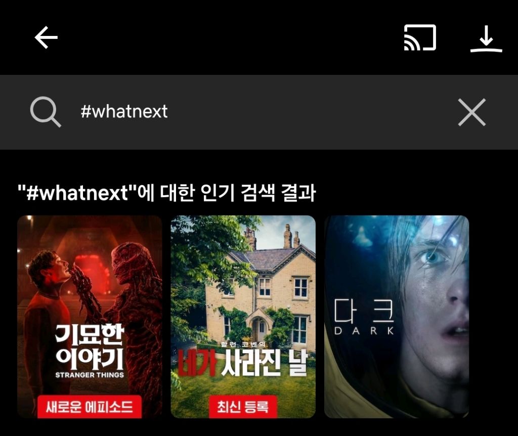 넷플릭스에서 1월 7일에 미래가 온다고 했는데 넷플릭스에 #whatnext 검색하면 기묘한 이야기가 나옴