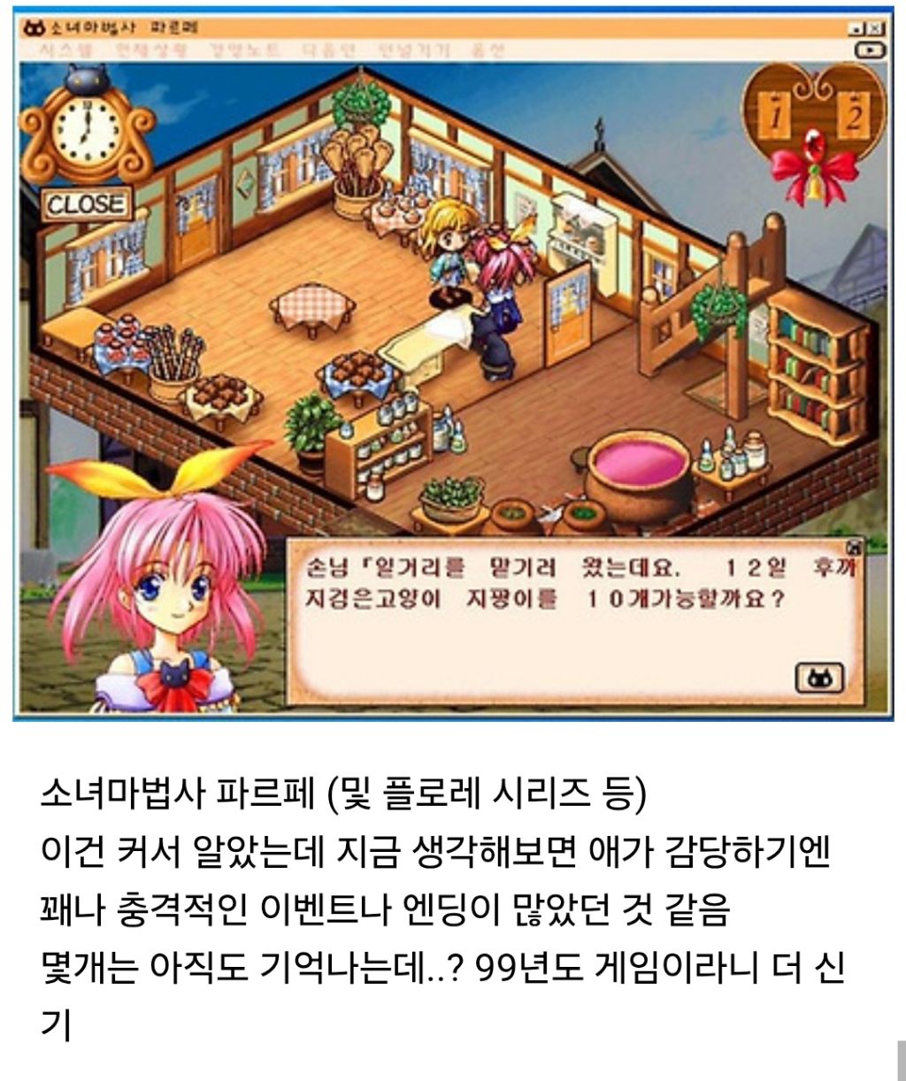 [스크랩] [기타]추억의 옛날CD게임들 작성자야이개라스가|작성시간26.01.06|조회수7,305 목록 댓글 43 글자크기 작게가 글자크기 크게가 출처: https://m.cafe.daum.net/subdued20club/ReHf/3414434?svc=cafeapp옛날 cd 게임 좋아했던 사람들 달글까글금지 까글금지 까글금지 까글금지 까글금지 까글금지 까글금지 달주=게임이라고는 거의 안하고 지금도 하는 게임이라고는 심즈 뿐인 사람생각해보면 옛날부터 온라인이나 rpg 게임보다 m.cafe.daum.net비비빅닷컴 게임 다음검색 스크랩 원문 : *여성시대* 차분한 20대들의 알흠다운 공간 현재 게시글 추가 기능 열기 북마크 공유하기 신고 센터로 신고 댓글 댓글 43 댓글쓰기 답글쓰기 댓글 리스트 작성자아라비아따 따따따 | 작성시간 26.01.06 본문에서 비빅닷컴믄 해봣네 작성자Young Adult | 작성시간 26.01.06 코코룩 처돌이였음,, 딸기노트도 추억이다ㅜ 작성자이엑구 | 작성시간 26.01.06 써니하우스인가 코코룩 엘프왕이랑 이어지는 엔딩이 짱임... 답댓글 작성자이엑구 | 작성시간 26.01.06 싸움 ㅈㄴ 어려웠어 맨날 포션빨로 턴 존나 끌어서 겨우 이김 ㅜㅜ 작성자맵싀짱 | 작성시간 26.01.07 비비빅 ㅠ 댓글 전체보기