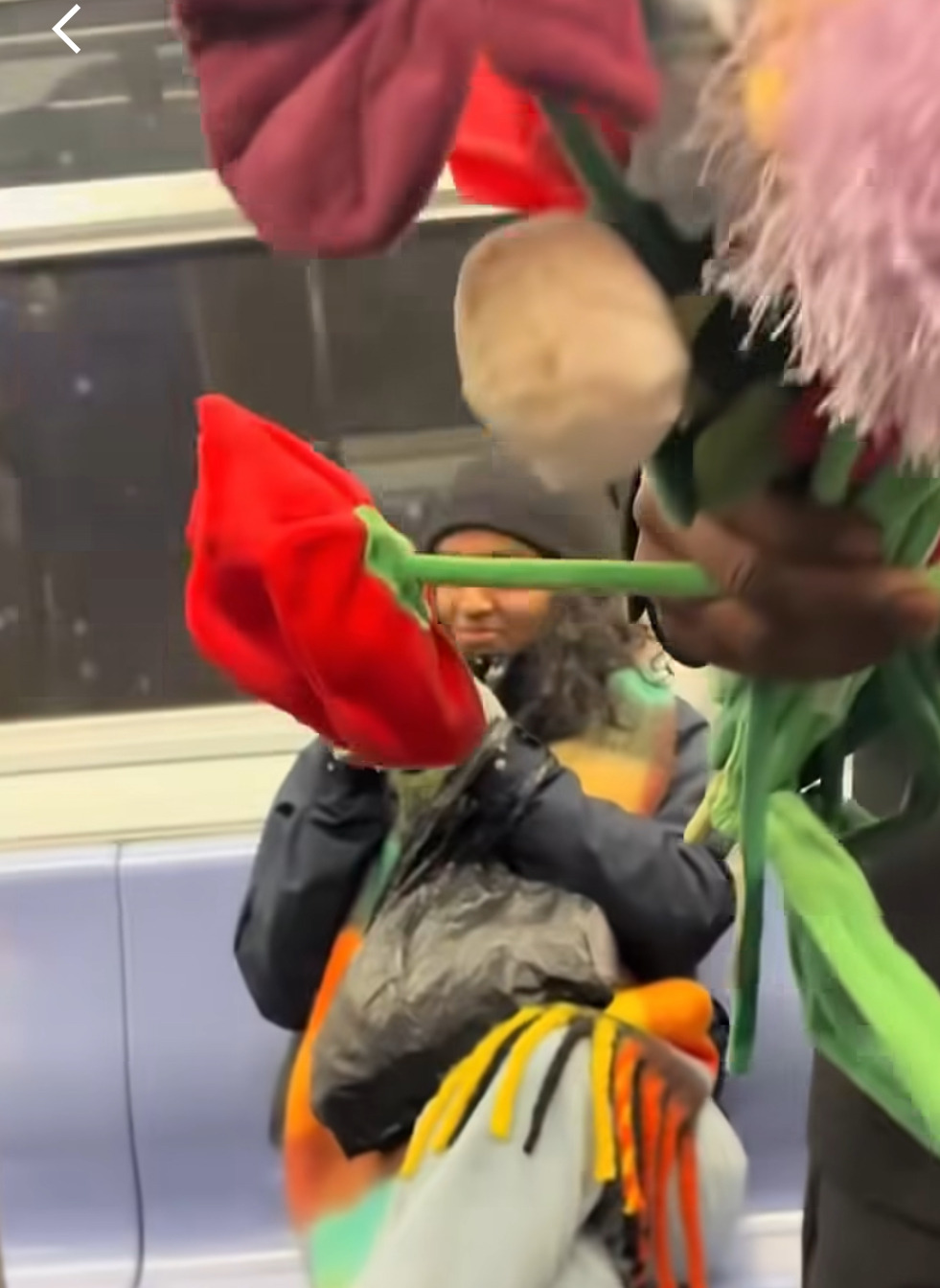 승객들한테 꽃 나눠주는 중
