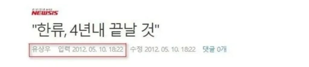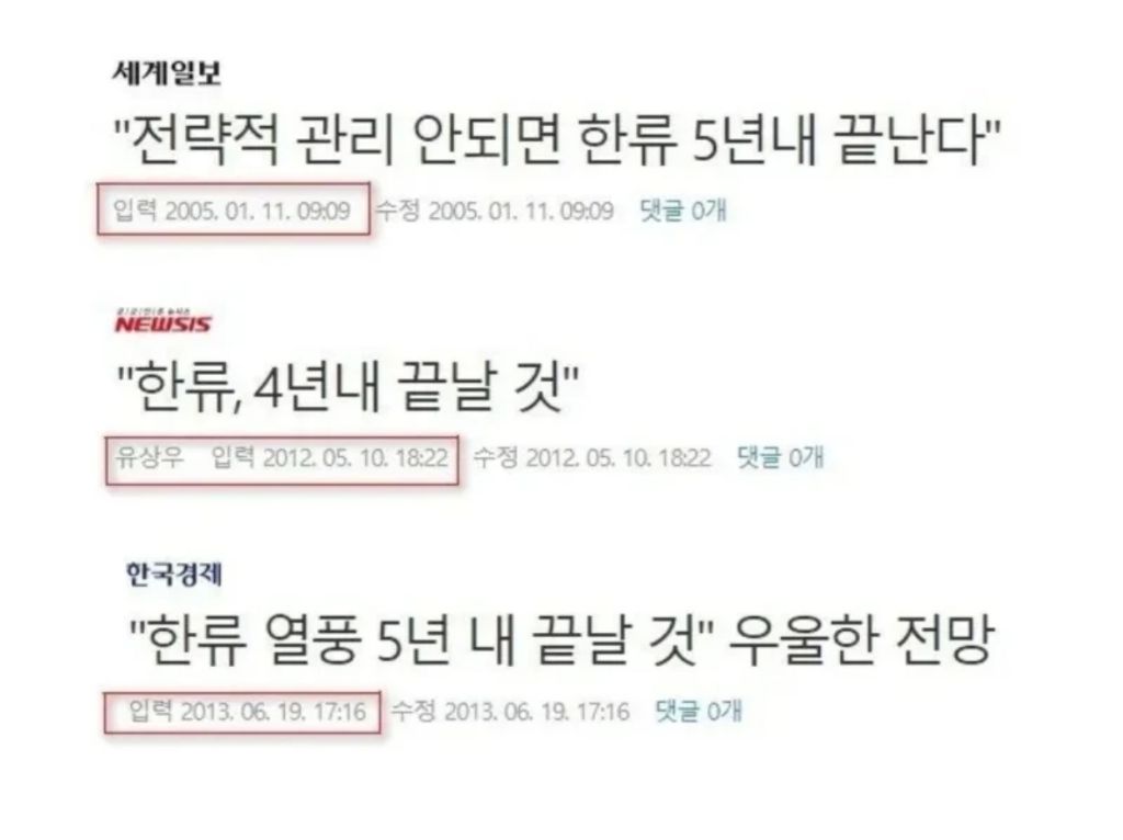 그래서 이쯤에 반짝했던 한류 위기설이 나돌았는지도 모름