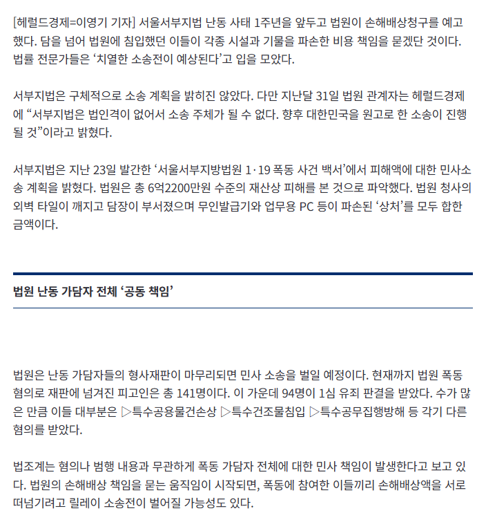 법원 폭동은 고작 6억임? 한남 감싸주기 지독하다 지독해