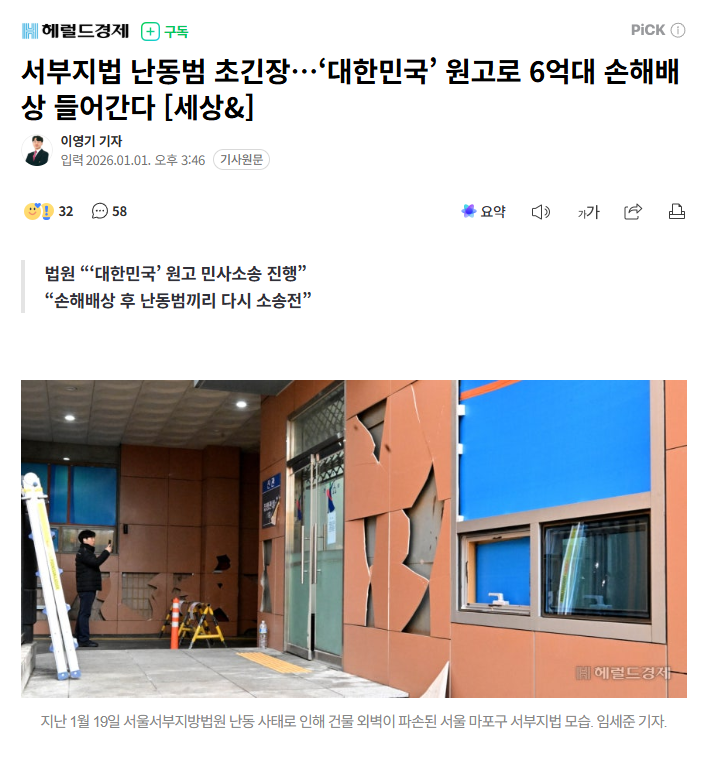작성자망글적토마 작성시간 26.01.06 법원 폭동인데 6억ㅋ 너무 적은데