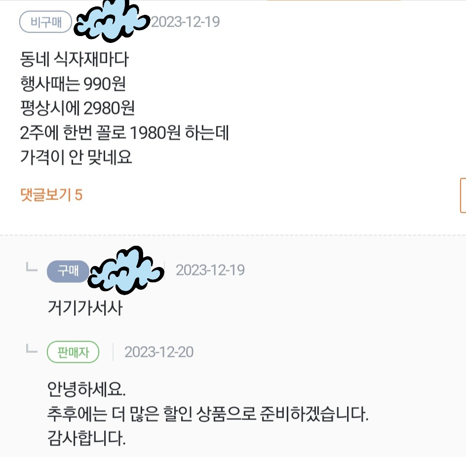 [스크랩] [배꼽의행방]판매자도 아니면서 QnA에 답변다는 사람들ㅋㅋ 작성자두버이쫀둑쿠키|작성시간26.01.06|조회수60,283 목록 댓글 51 글자크기 작게가 글자크기 크게가 소울드레서는 우리가 만들어가는 소중한 공간입니다.댓글 작성 시 타인에 대한 배려와 책임을 다해주세요.ㅁㅂ 다음검색 스크랩 원문 : 소울드레서 (SoulDresser) 현재 게시글 추가 기능 열기 북마크 공유하기 신고 센터로 신고 댓글 댓글 51 댓글쓰기 답글쓰기 댓글 리스트 작성자깨애앵 | 작성시간 26.01.07 ㅋㅋㅋㅋㅋㅋㅋㅋㅋㅋㅋㅋㅋ컄아 작성자김치광이 | 작성시간 26.01.07 ㅋㅋㅋㅋㅋㅋㅋㅋㅋㅋㅋㅋㅋㅋㅋㅋㅋㅋㅋㅋㅋㅋㅋㅋㅋㅋㅋㅋㅋㅋㅋㅋㅋㅋㅋㅋㅋㅋㅋㅋㅋㅋ 작성자앙버터소금빵 | 작성시간 26.01.07 거기가서샄ㅋㅋㅋㅋㅋㅋㅋ정정당당하게 구매자계급으로 붙어 작성자똔똔똔이 | 작성시간 26.01.07 좋다ㅋㅋㅋㅋㅋㅋ 작성자두반장 | 작성시간 26.01.11 ㅋㅋㅋㅋㅋㅋㅋ 성질머리 댓글 전체보기
