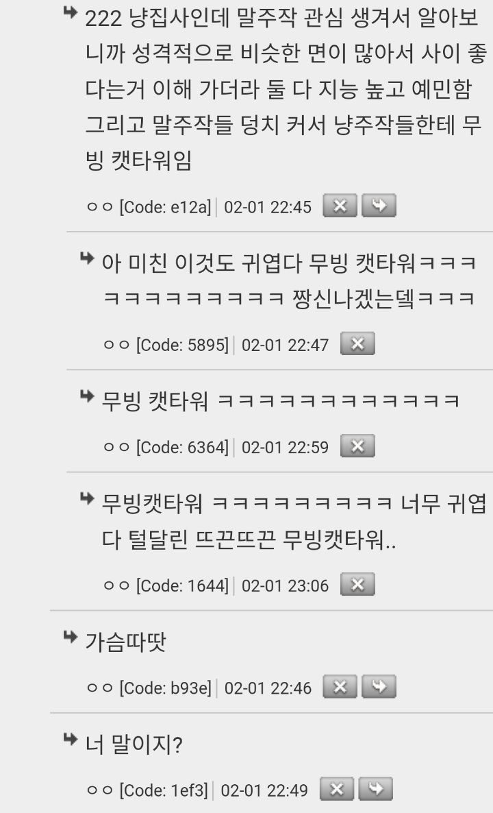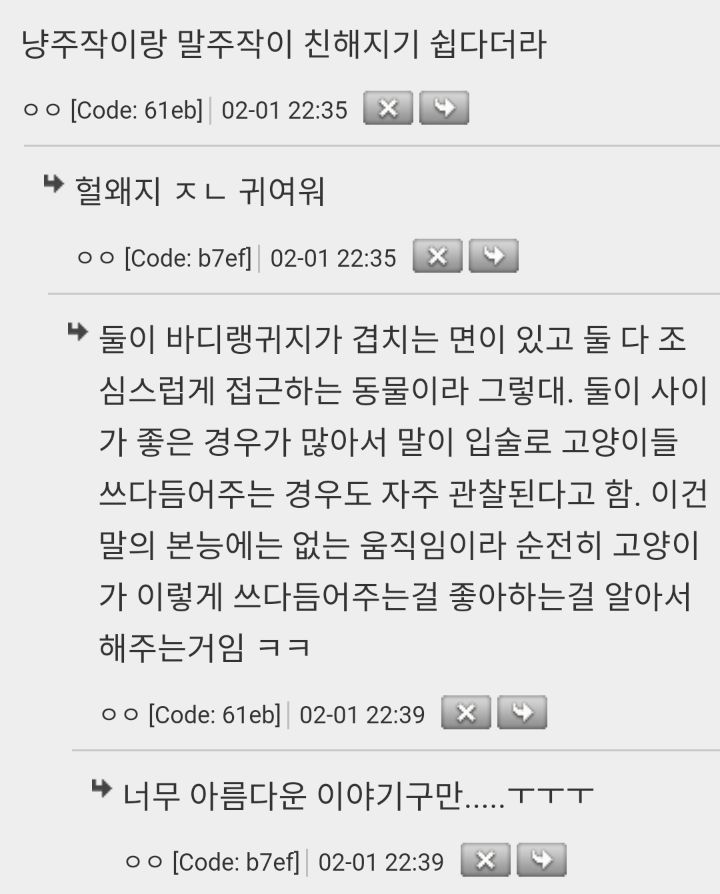 [스크랩] [힐링]친한 고양이 보러 달려오는 말 작성자두버이쫀둑쿠키|작성시간26.01.07|조회수20,401 목록 댓글 26 글자크기 작게가 글자크기 크게가 소울드레서는 우리가 만들어가는 소중한 공간입니다.댓글 작성 시 타인에 대한 배려와 책임을 다해주세요.2차 출처: 해연갤 다음검색 스크랩 원문 : 소울드레서 (SoulDresser) 현재 게시글 추가 기능 열기 북마크 공유하기 신고 센터로 신고 댓글 댓글 26 댓글쓰기 답글쓰기 댓글 리스트 작성자bitter melon | 작성시간 26.01.07 너무 귀여워 ㅋㅋㅋㅋㅋㅋㅋ 작성자고양이들아아프지마 | 작성시간 26.01.07 엉엉엉 ㅠㅠ 너무 귀여워 엉엉엉ㅠㅠㅠ 작성자사랑은 나도 모르는 새에 | 작성시간 26.01.07 ㅠㅠㅠㅠ궈여워 작성자암국 | 작성시간 26.01.07 무빙캣타워ㅋㅋㅋㅋㅋㅋㅋ 작성자백흑쿠킹 | 작성시간 26.01.07 ㅜㅜㅜㅠ아 너무 사란스러워 댓글 전체보기