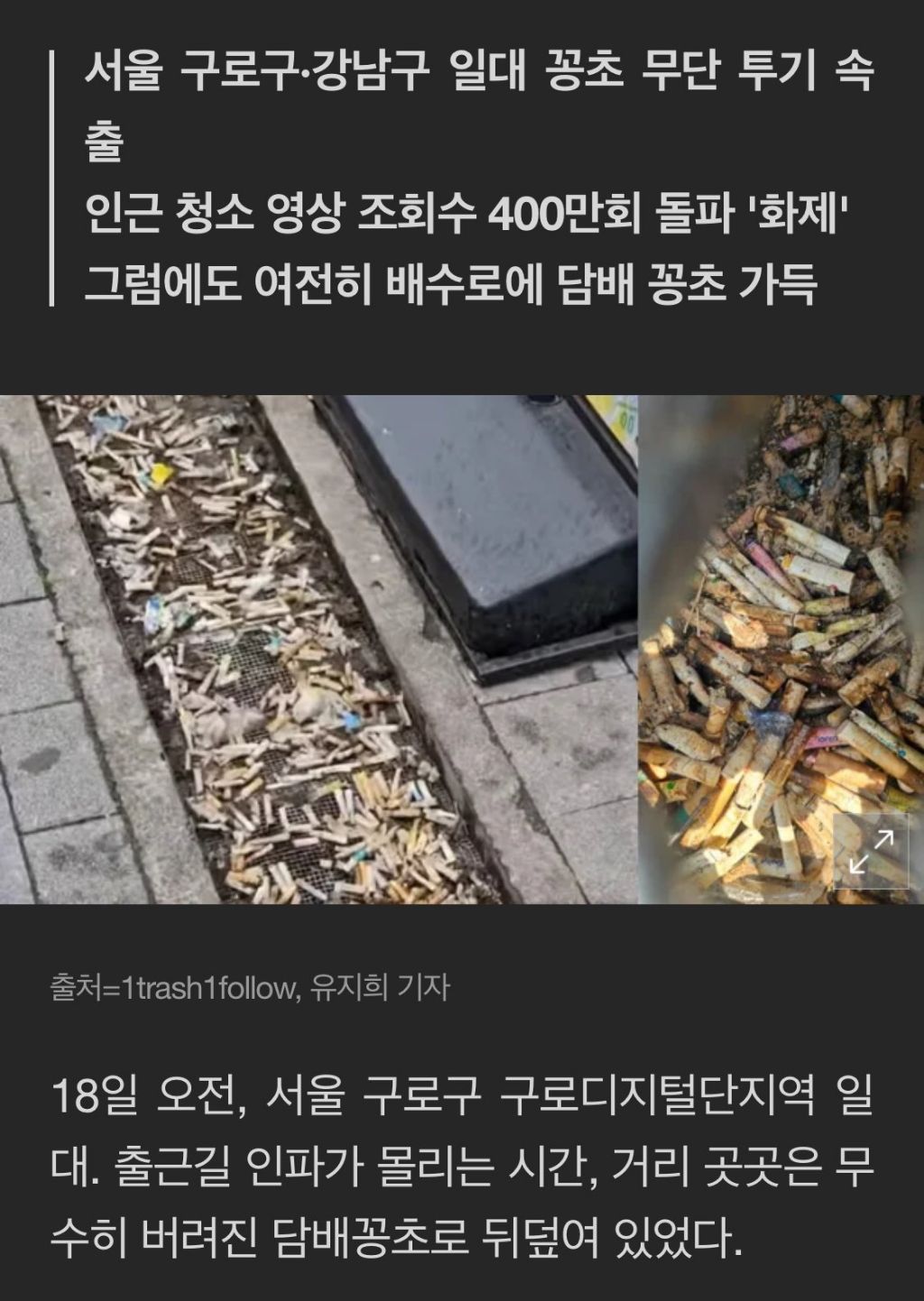오늘 보니 사람들이 담배꽁초 버려놓음 pic.twitter.com/BlbvfIPtWy