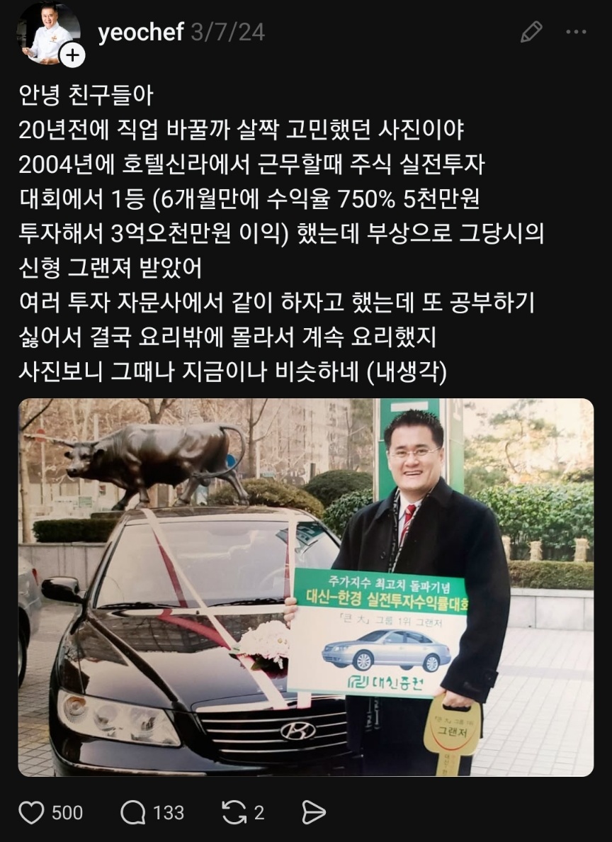 [스크랩] [흥미돋]투자대회에서 수익율 750% 달성한 주방장 작성자SPYAIR|작성시간26.01.07|조회수15,632 목록 댓글 6 글자크기 작게가 글자크기 크게가 여경래 셰프 동생인 여경옥 셰프 다음검색 스크랩 원문 : 이종격투기 현재 게시글 추가 기능 열기 북마크 공유하기 신고 센터로 신고 댓글 댓글 6 댓글쓰기 답글쓰기 댓글 리스트 작성자있는그대로서로를받아줘 | 작성시간 26.01.07 재능 나눠써주세요 진짜 작성자알론조키핡 | 작성시간 26.01.07 와.. 재주많다 진짜 작성자무화과깜빠뉴 | 작성시간 26.01.07 와 주변에서 엄청 많이 물어보겠다 작성자저녁없는삶 | 작성시간 26.01.07 주식으로 성공 함 맛봤는데 뚝심있게 요리만 밀고 가는거 뭔가 멋있다ㅋㅋㅋㅋ 작성자풍성충 | 작성시간 26.01.07 우와ㅋㅋㅋㅋㅋㅋ 댓글 전체보기
