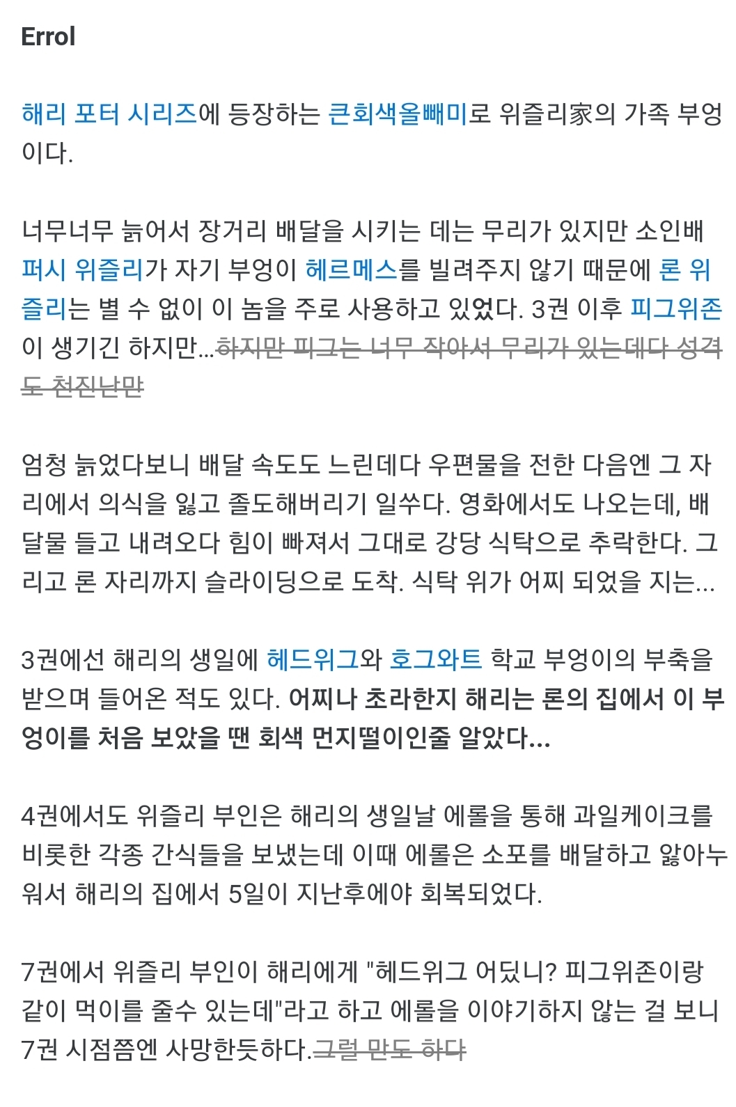 위즐리 가족들의 부엉이, 에롤(Errol)