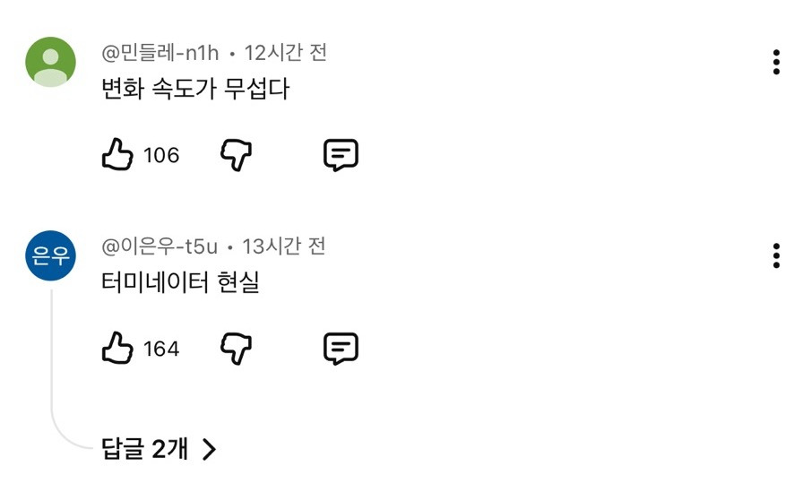 작성자뽀라돌희 작성시간 26.01.07 처음에만 훈련시켜야 하고 로봇이 더 비싸지 점점 엄청 싸져서 사람자리 대체하겠지