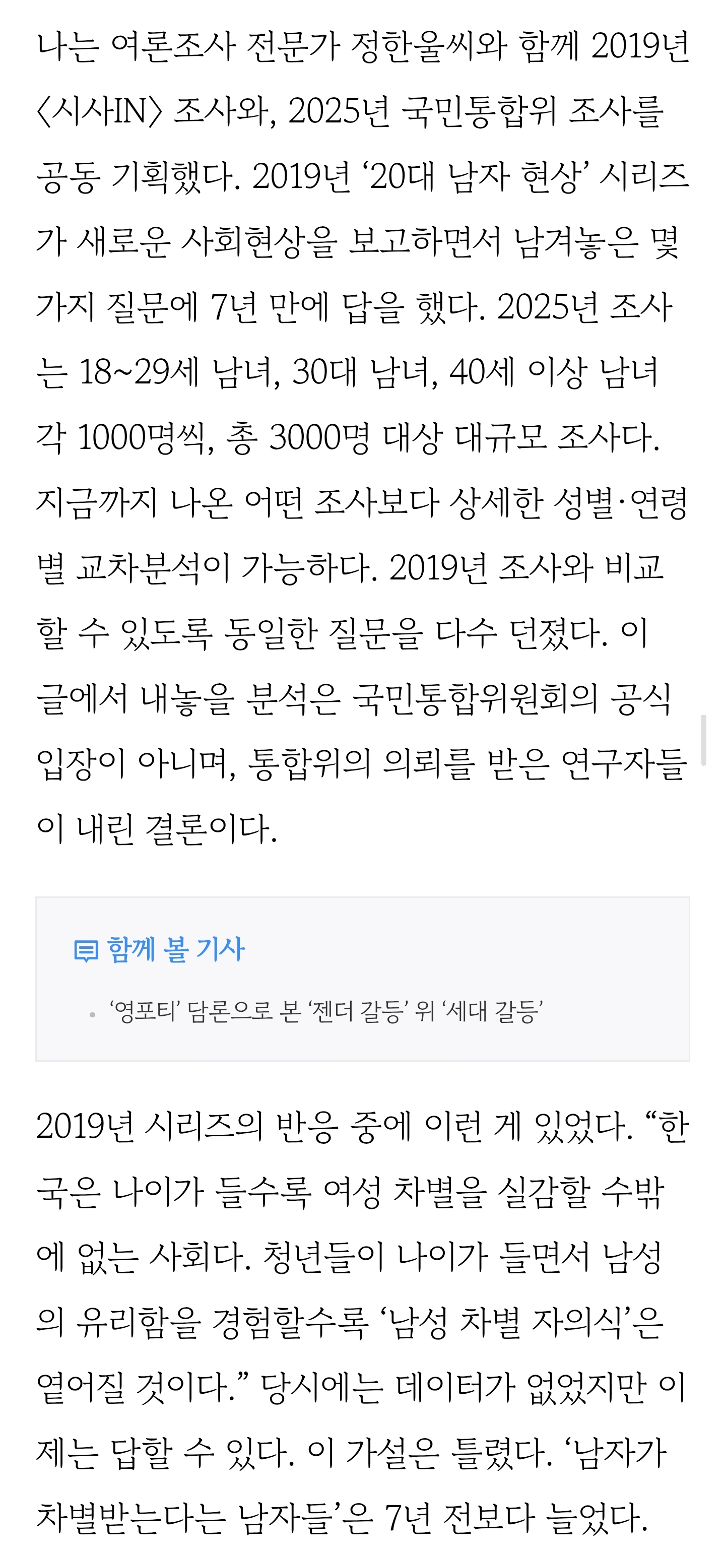 작성자훗냐훗냐훗냐 작성시간 26.01.07 역시 시사인 항상 젠더갈등에 대한 분석 젤 자세하게 써주는거같다 댓글 동현이들 많아서 기사에 댓도 같이 써줬으면 좋겠음 여시들 ㅠ