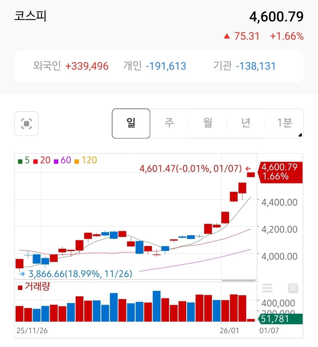 [흥미돋]코스피 4,600 신고가 작성자오천 스피|작성시간26.01.07|조회수7,310 목록 댓글 90 글자크기 작게가 글자크기 크게가 출처: 여성시대 오천 스피 다음검색 현재 게시글 추가 기능 열기 북마크 공유하기 신고 센터로 신고 댓글 댓글 90 댓글쓰기 답글쓰기 댓글 리스트 작성자스윗글로브 | 작성시간 26.01.07 와 대박 작성자니니니노노뇨 | 작성시간 26.01.07 코덱스 지금 사도 안늦어ㅛ을아나 너무 고점 같아서ㅠ 하 이상한거 사지말고 코댁스나 살걸 작성자바나냐스플릿 | 작성시간 26.01.07 기다리고있었습니다 작성자샘랑둥이 | 작성시간 26.01.07 간다간다 작성자Rock will never die | 작성시간 26.01.08 대박임.... 댓글 전체보기