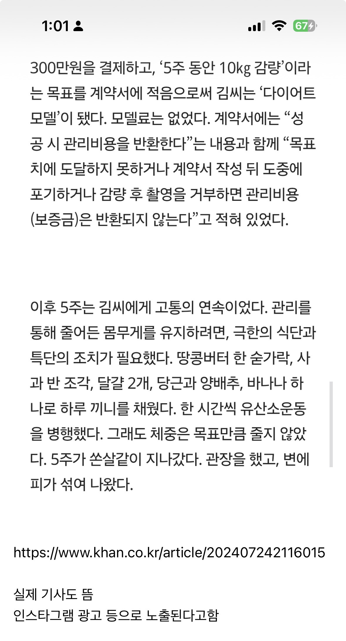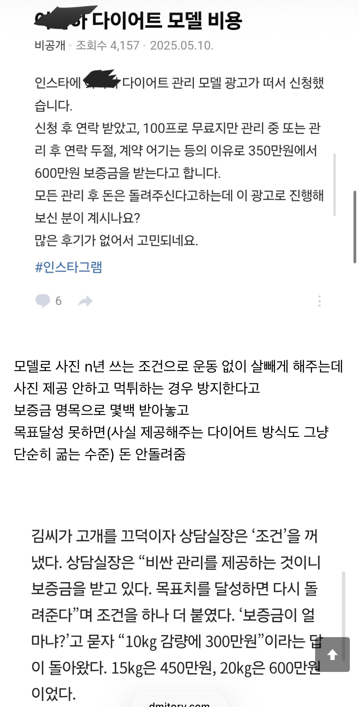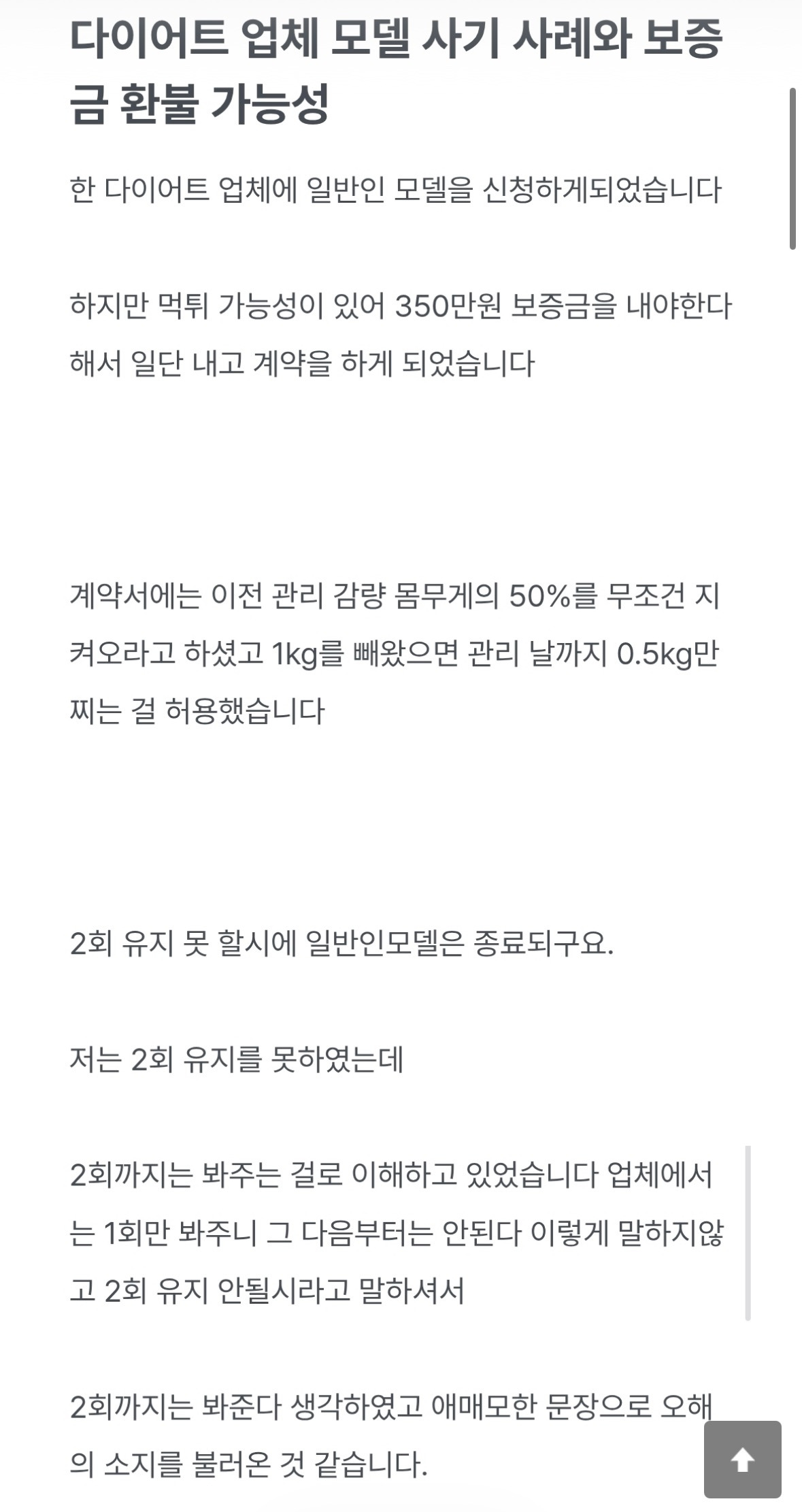 작성자루비우루루 작성시간 26.01.07 나도 했는데 사기는 아니긴 함... 내가 관리한 지점이 설명을 명확히 해준지는 모르겠으나 계약서에 써있어서 나중에 계약서 3번 정도 더 본 듯 나는 끝나고 바로 돌려주긴 했어 결론적으로는 그냥 엄청 굶어서 25키로 뺀 거나 다름이 없었어