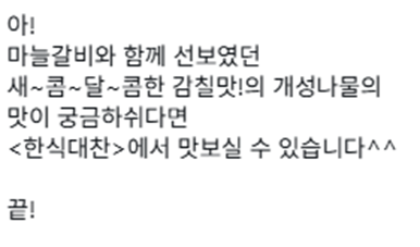참고로 개성나물 먹으려면 한식대찬 들어가면 된다 함
