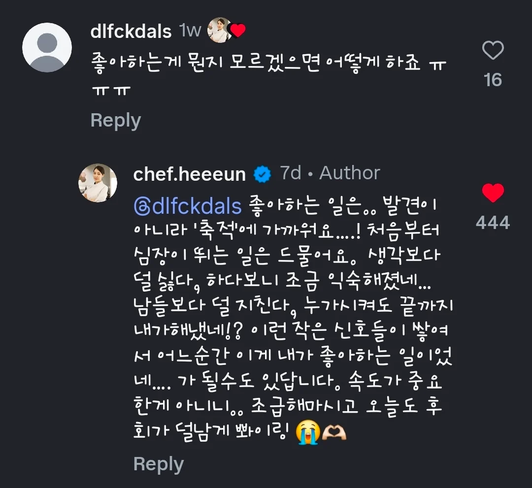 [스크랩] [흥미돋]흑백요리사 김희은 셰프가 해주는 조언.jpg 작성자라이도|작성시간26.01.07|조회수64,091 목록 댓글 47 글자크기 작게가 글자크기 크게가 다음검색 스크랩 원문 : 알 수 없는 동아리ㅤ 현재 게시글 추가 기능 열기 북마크 공유하기 신고 센터로 신고 댓글 댓글 47 댓글쓰기 답글쓰기 댓글 리스트 작성자러키잔아 | 작성시간 26.01.07 와..... 작성자우리언니그런사람아니다 | 작성시간 26.01.07 와닿는 말이다… 작성자나는조단위를버는사람이야 | 작성시간 26.01.07 진짜 속 깊은 사람이야 희은쉪,,🫶🏻 작성자땀배달기 | 작성시간 26.01.07 댓글 너무 좋다 작성자ㄱㅈㅇㅊㄱ | 작성시간 26.01.08 으른이다 댓글 전체보기