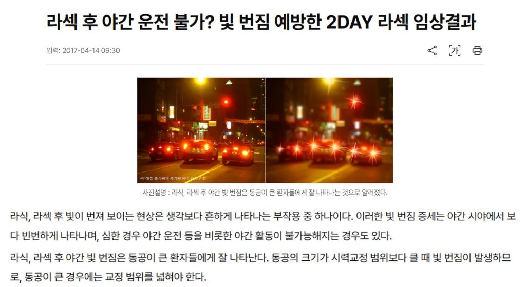 작성자흑미율무맘 작성시간 26.01.08 나는 라식한지 10년 넘어가는데 빛번짐 이제 좀 운전할 때 좀 있고 괜찮았음