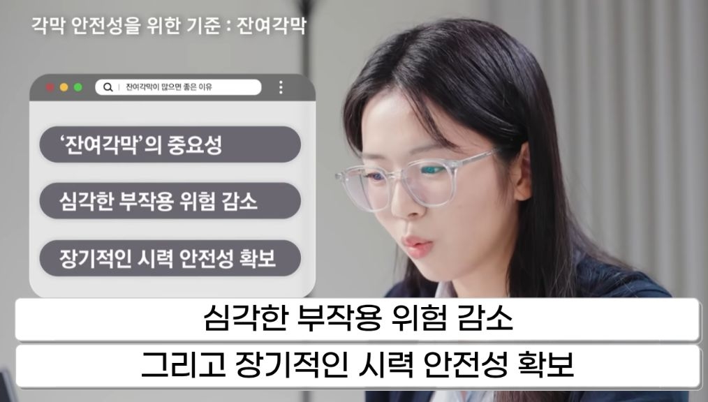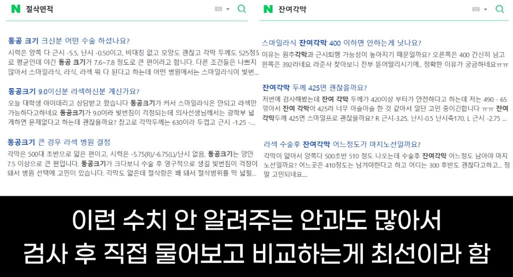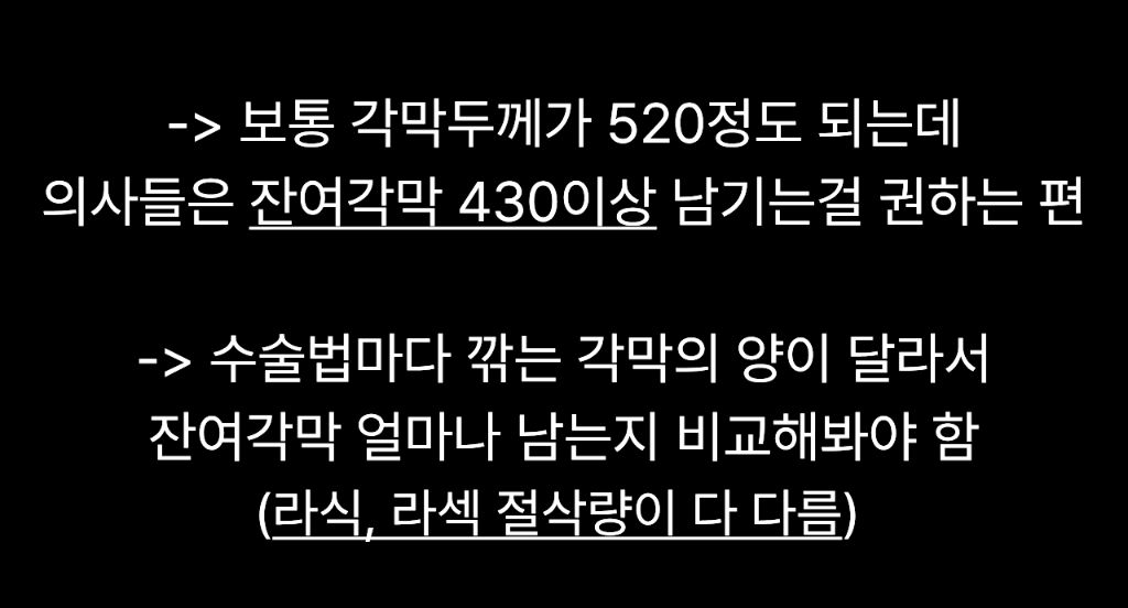한 의사는 잔여각막 두께400맞춰서 교정시력은 1.0/0.8로 광학부 좀 넓게