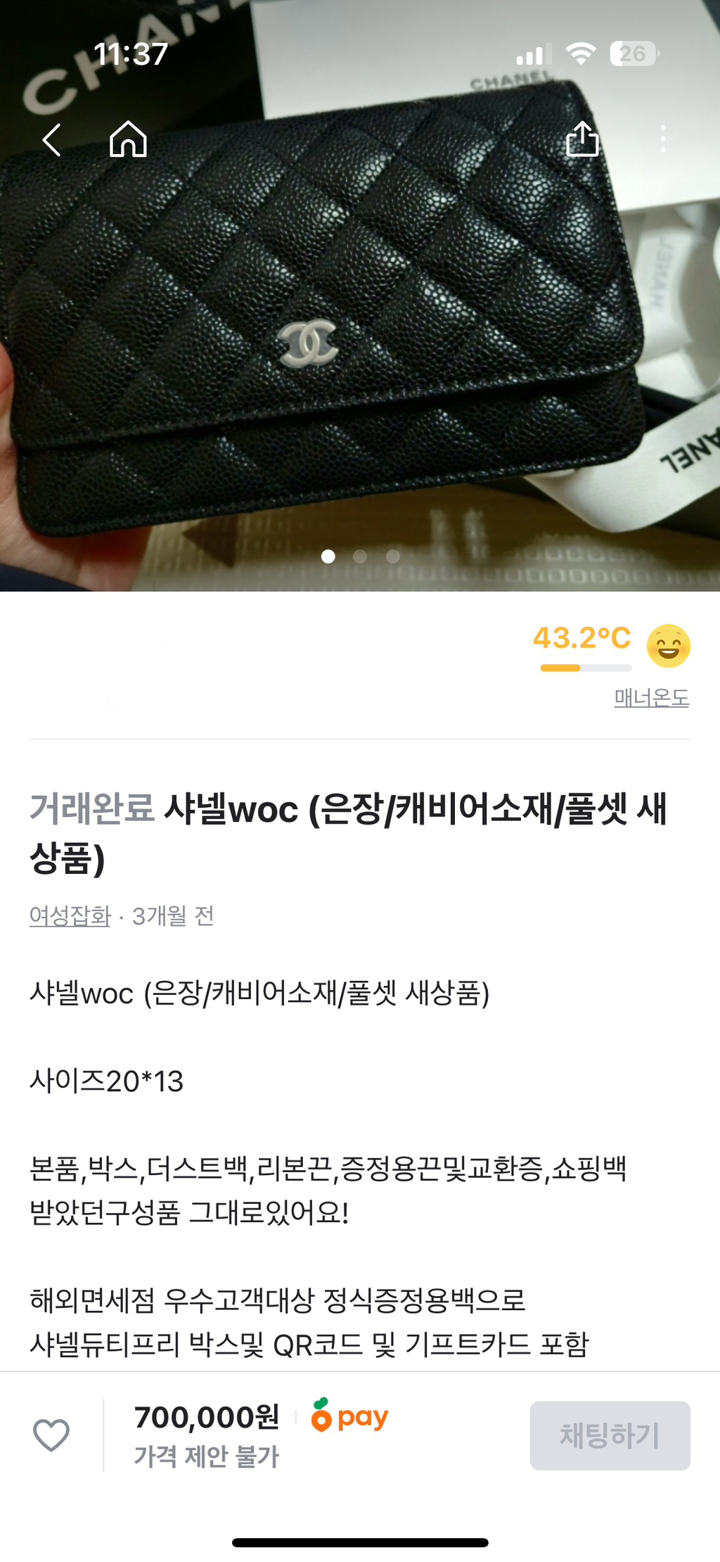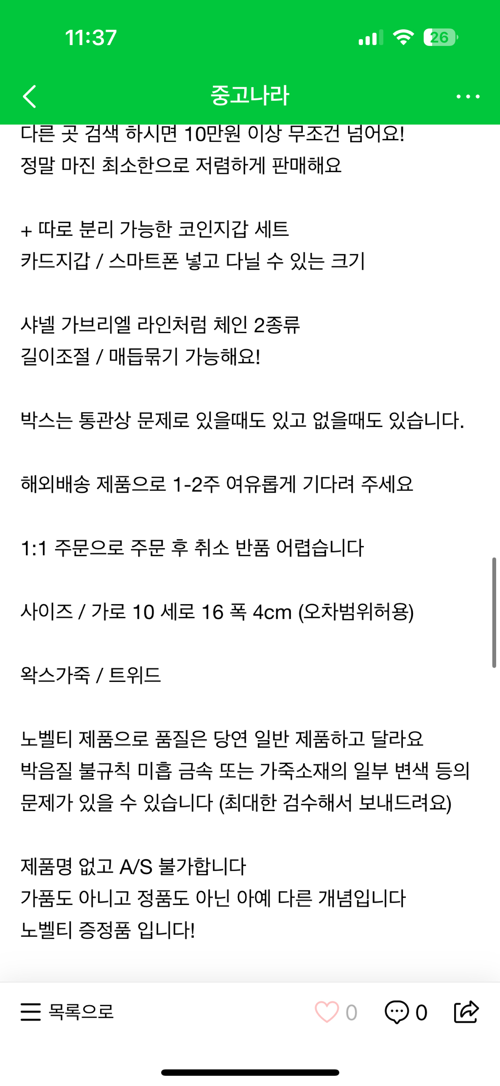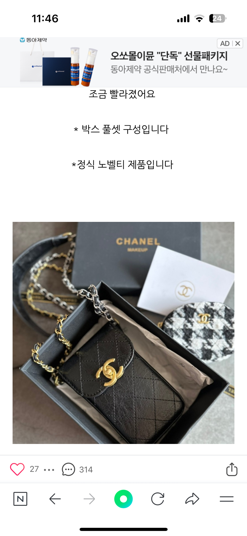 [스크랩] [흥미돋]요즘 당근마켓 및 중고나라에서 종종 보이는 “샤넬” 노벨티 가방 작성자플리스|작성시간26.01.07|조회수69,302 목록 댓글 26 글자크기 작게가 글자크기 크게가 출처 : 여성시대 자모카 훠지샤넬 뷰티에서VIP 우수고객들한테 증정해준 가방이라며정품이라고 판매함샤넬 뷰티에서 미쳤다고파우치도 아닌 가방을 증정할까...?그저 너무나 허접한 가품일뿐인데저런 글에 채팅 수가 많아서 걱정임네? 740만원짜리 투투백을사은품으로요?댓글 300개 넘음.. 다음검색 스크랩 원문 : *여성시대* 차분한 20대들의 알흠다운 공간 현재 게시글 추가 기능 열기 북마크 공유하기 신고 센터로 신고 댓글 댓글 26 댓글쓰기 답글쓰기 댓글 리스트 작성자쪼꼬소라빵 | 작성시간 26.01.07 에코백은 엄청 받아봤는데.. 저런것도? 작성자2찍은좆본으로 | 작성시간 26.01.07 샤넬뷰티 개구린 에코백이랑 파우치만 주구장창 주던데 작성자샤를로드 갱스부르 | 작성시간 26.01.07 woc 정품 가격이 580정도임..ㅎ 노벨티일리가요... 작성자익스펜시브 페트롤리움 | 작성시간 26.01.07 겠냐고 작성자Bblue | 작성시간 26.01.07 와 존나구려 댓글 전체보기