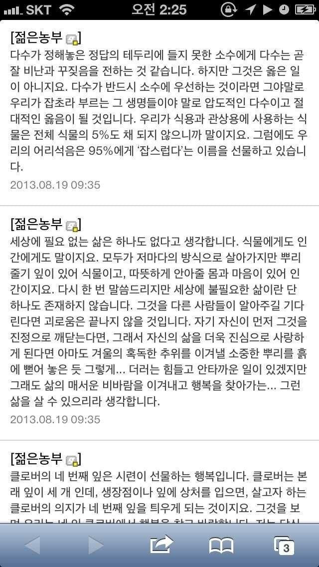 참고로 아직도 '젊은 농부'는 좋은 댓글을 그 글에 주기적으로 달아주시고 계시는 중