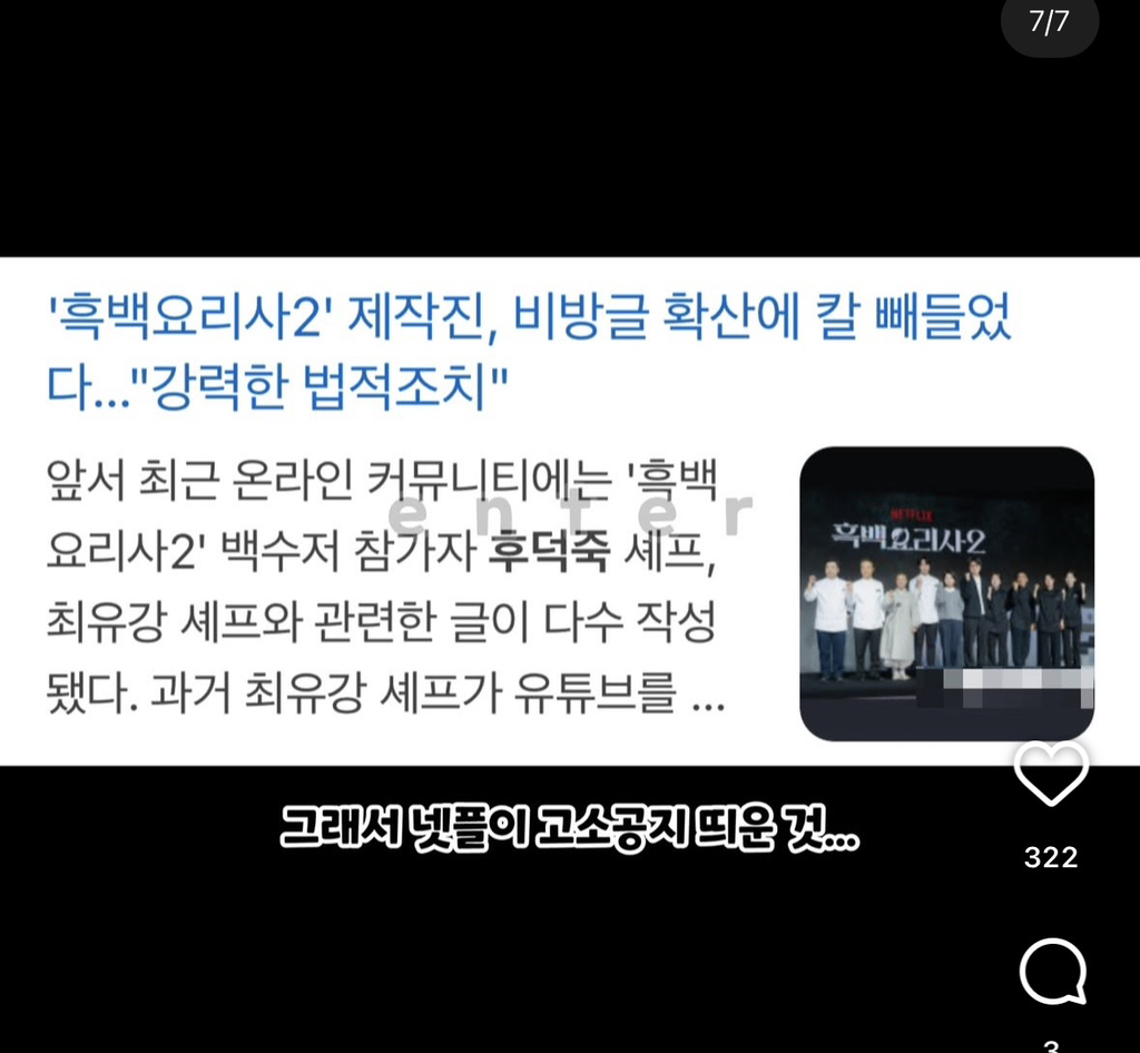 작성자아슬히 작성시간 26.01.11 아직도 흑백요리사달글 메바달글에 조롱하는거 버젓이 올려놨던데