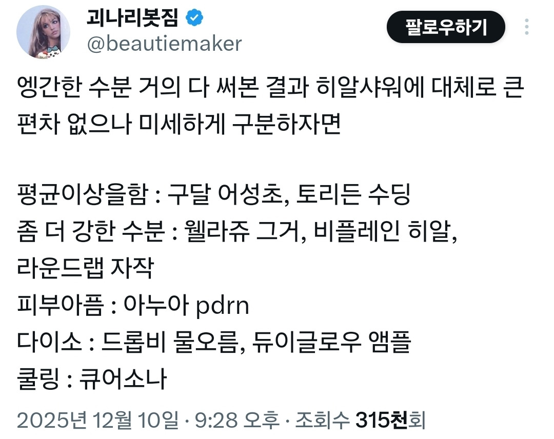 작성자커커커몬요 작성시간 26.01.09 다이소 생각보다 히알함량 엄청 낮아서 그거 쓰고 효과 잇다 이러는거 보면 그냥 순한아무크림 발라도 ㄱㅊ을듯 싶고....