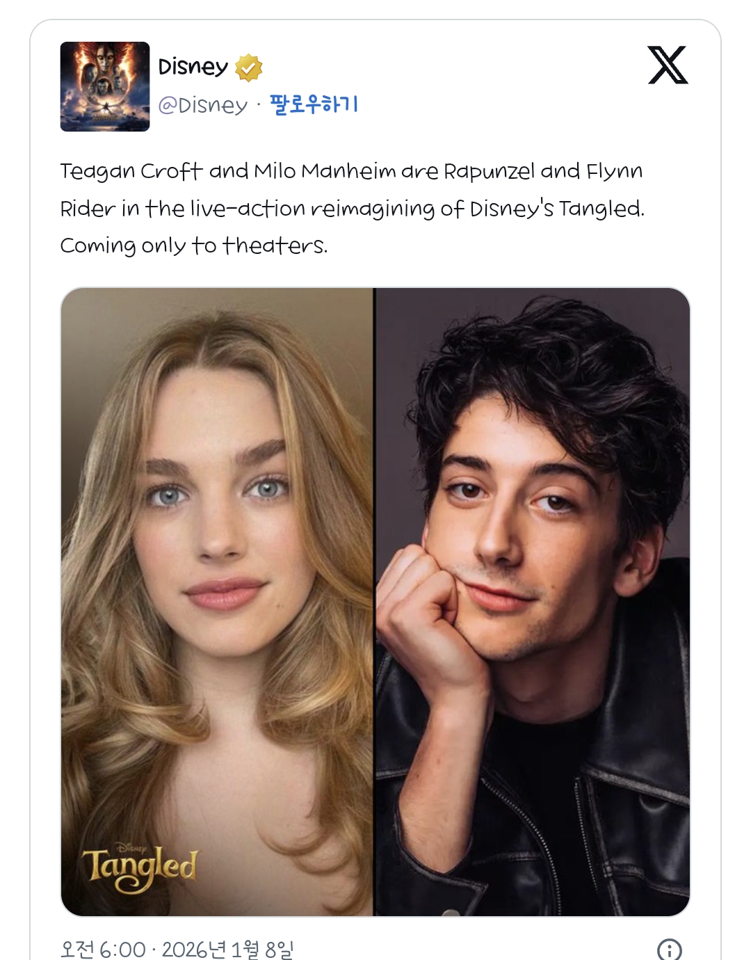[흥미돋]라푼젤 실사영화 캐스팅 확정 작성자세 레나|작성시간26.01.08|조회수45,553 목록 댓글 39 글자크기 작게가 글자크기 크게가 출처: https://www.dmitory.com/hy/395864513여주 티건 크로프트2004년생 호주배우래dc 타이탄 드라마에도 나왔다고 함남주는 계속 말나왔던 마일로 맨하임 다음검색 현재 게시글 추가 기능 열기 북마크 공유하기 신고 센터로 신고 댓글 댓글 39 댓글쓰기 답글쓰기 댓글 리스트 작성자포카리해 | 작성시간 26.01.08 싱크는 잘 맞네 작성자마이리를소다팝팝 | 작성시간 26.01.08 대박이다 남자얼굴뭐야했는데 ㄹㅇ똑같음 작성자...얼! | 작성시간 26.01.08 씨바유진개똑같네 작성자뿌루루뿌뿌 | 작성시간 26.01.08 유진 개똑같은데 원작보다 나은거 실환가;; 디즈니 모델링 ㄹㄹ 무슨일; 작성자비혼주의다 | 작성시간 26.01.08 이제야... 댓글 전체보기