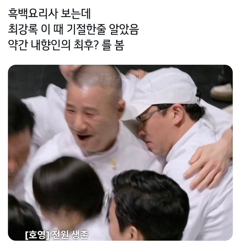 [흥미돋]흑백요리사 백수저들 다 붙었을때 눈에 띄는 내향인 두 명 작성자보닌|작성시간26.01.08|조회수87,884 목록 댓글 63 글자크기 작게가 글자크기 크게가 출처: 여성시대 보닌다 부둥켜 안는데 혼자만 멀찍이 떨어져있는 태안의 아들 김성운 솊멀찍 -임짱이 끌고왔는데도 그마저도 멀찍... 그리고이미 기절한 최강록 다음검색 현재 게시글 추가 기능 열기 북마크 공유하기 신고 센터로 신고 댓글 댓글 63 댓글쓰기 답글쓰기 댓글 리스트 작성자무화과깜빠뉴 | 작성시간 26.01.08 두 사람 다 기력 0처럼 보여 ㅠ ㅋㅋㅋㅋㅋ 작성자명수온 | 작성시간 26.01.09 다들 신나서 흔들리는 캡쳐본 속에 강록 혼자 선명한거야 작성자jdkbs | 작성시간 26.01.11 ㅁㅊ ㅋㅋㅋㅋㅋ 최강록이 웬일로 저기 들어가있냐했는데 기절 ㅅㅂㅋㅋㅋㅋㅋㅋㅋㅋㅋㅋㅋㅋㅋㅋㅋㅋㅋㅋㅋㅋㅋㅋㅋㅋㅋㅋㅋㅋㅋ 작성자풉킼 | 작성시간 26.01.12 아 웃겨 ㅌㅋㅋㅋㅋ 작성자똥꾸라지풍 | 작성시간 26.01.17 아 존나웃겨 ㅠㅠ 댓글 전체보기
