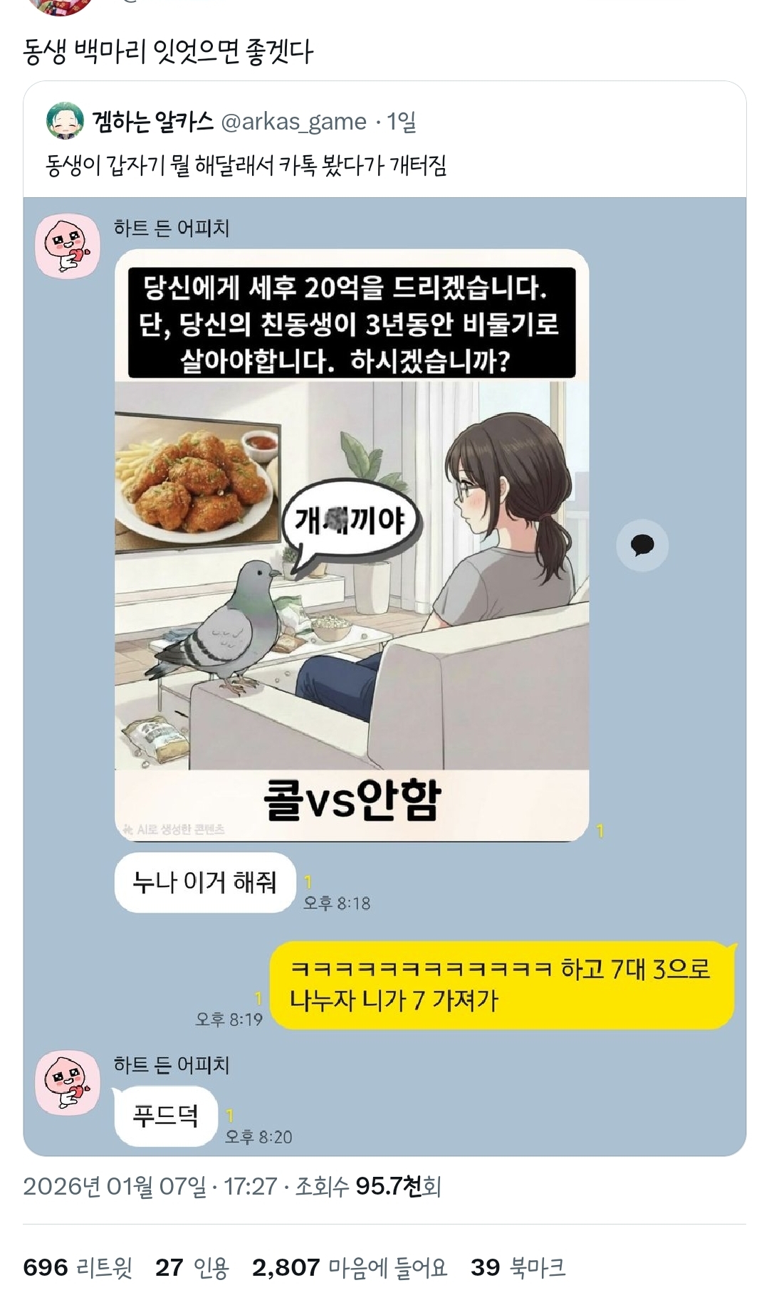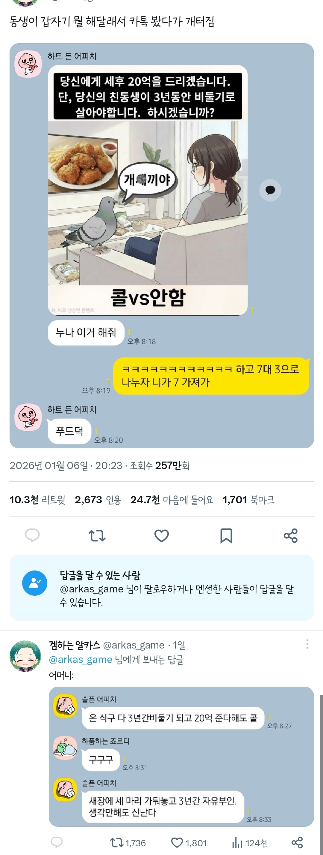 [배꼽의행방]동생 백마리 있었으면 좋겠다 작성자카이지|작성시간26.01.08|조회수42,180 목록 댓글 19 글자크기 작게가 글자크기 크게가 출처: 여성시대 (본인 닉네임)https://twitter.com/arkas_game/status/2008499744143012325?t=3AdRhjOVKdU1ClWWcKjd4w&s=19https://twitter.com/madzzic/status/2008817857438912944?t=-PXwfVMUSLYQeGRLBgeK6g&s=19https://twitter.com/gohyangmandyu/status/2008757189549453436?t=-PXwfVMUSLYQeGRLBgeK6g&s=19https://twitter.com/youjustgoandfly/status/2008843570170753239?t=MqgpQSP8y7CWejbzNxXnSg&s=19 다음검색 현재 게시글 추가 기능 열기 북마크 공유하기 신고 센터로 신고 댓글 댓글 19 댓글쓰기 답글쓰기 댓글 리스트 작성자왠 아니고 ㅣ웬ㅣ고슴도치 | 작성시간 26.01.08 엄마한테 지금 낳아달라도해도 될까이왕 비둘기 되는거 어릴때 해치우자 작성자모망 | 작성시간 26.01.08 이어지는 세계관임?ㅋㅋㅋㅋㅋㅋㅋㅋㅋ 작성자알콜망곰 | 작성시간 26.01.08 왜 나 한명 밖에 없어 작성자파란콩콩 | 작성시간 26.01.14 ㅋㅋㅋㅋㅋㅋㅋ엌ㅋㅋㅋㅋㅋㅋ여샤 혹시폰트 뭔지 물어봐도될까 넘내스 답댓글 작성자카이지 작성자 본인 여부 작성자 | 작성시간 26.01.14 Dain디어모멘트 입니당~~ 이미지 확대 댓글 전체보기
