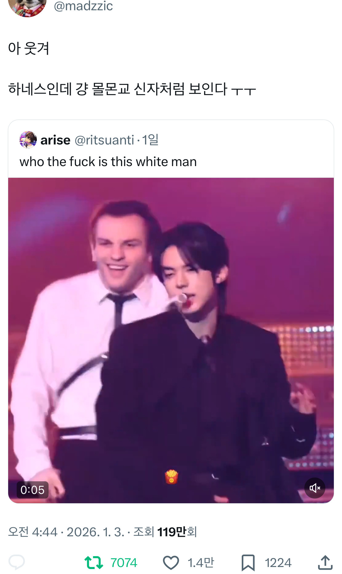 [스크랩] [흥미돋]트위터에서 핫(n)한 케이팝 백인 댄서.twt 작성자Egypt|작성시간26.01.08|조회수6,897 목록 댓글 56 글자크기 작게가 글자크기 크게가 출처: https://x.com/ohmytws/status/2008453893903315152?s=46 New‼️ㅋㅋㅋㅋㅋㅋㅋㅋㅋㅋㅋㅋㅋ 다음검색 스크랩 원문 : *여성시대* 차분한 20대들의 알흠다운 공간 현재 게시글 추가 기능 열기 북마크 공유하기 신고 센터로 신고 댓글 댓글 56 댓글쓰기 답글쓰기 댓글 리스트 작성자기지미오 | 작성시간 26.01.08 진짜 뭘까 작성자développé | 작성시간 26.01.08 관상에 끼가 없고 팔다리도 짧퉁해서 그런듯 답댓글 작성자développé | 작성시간 26.01.08 세무사st인데. 답댓글 작성자développé | 작성시간 26.01.08 그리고 그루밍이 전혀 안되어있어 작성자허르헉헉 | 작성시간 26.01.09 댄서도 좀 꾸꾸하고 무대서지않아? 뭐 헤어고 메이크업이고 전혀 안돼있어서 더 눈에 띄는듯 댓글 전체보기