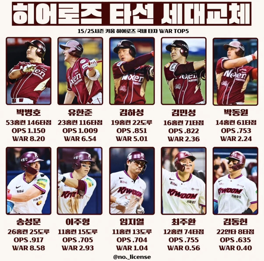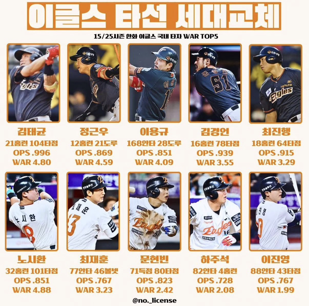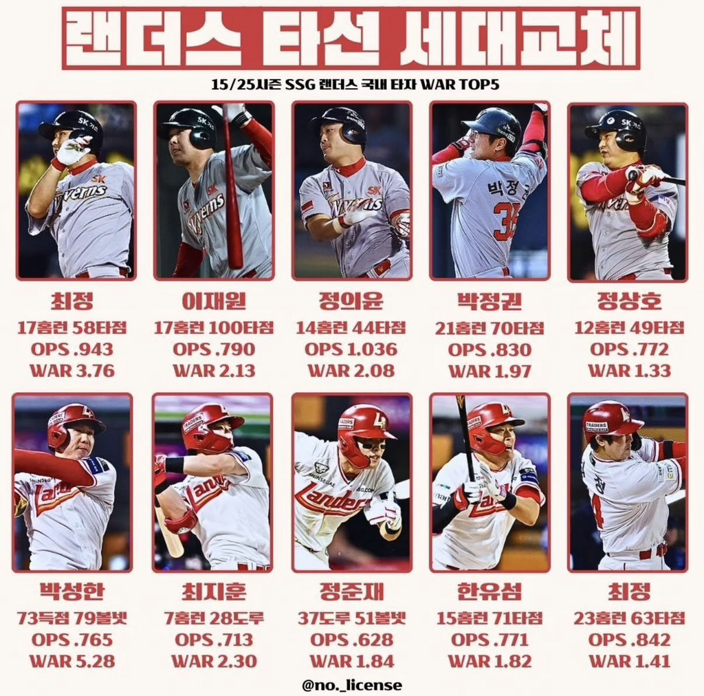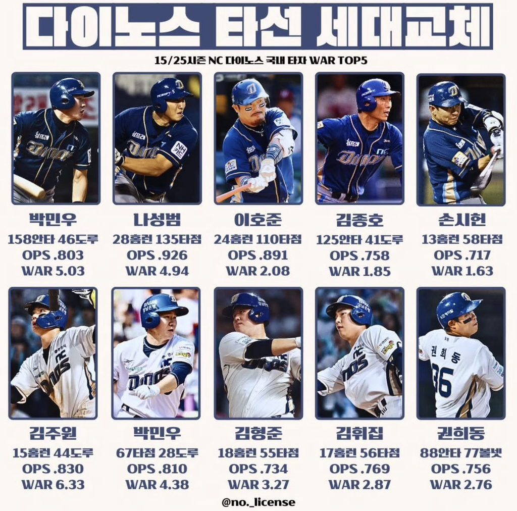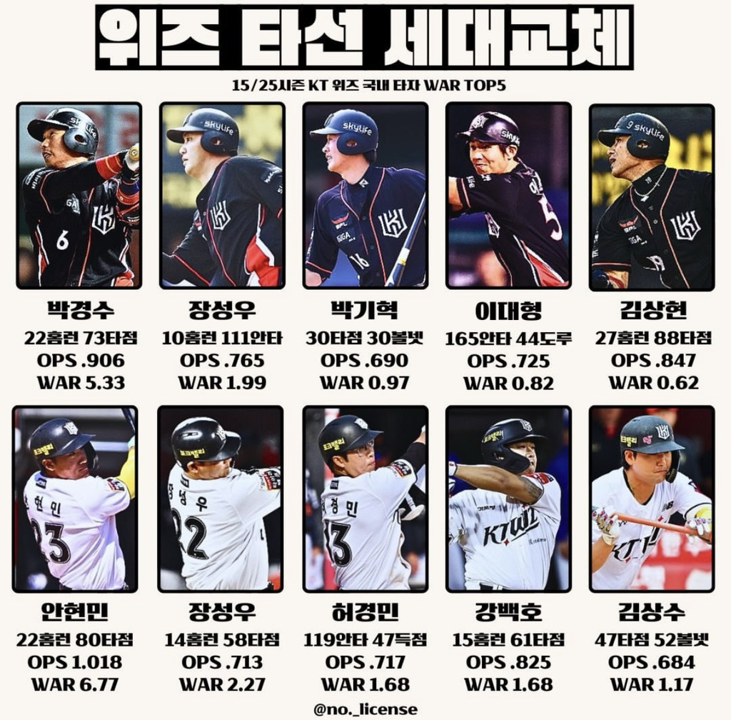 [흥미돋][야구] 각 팀별 타선 세대교체 (15vs25) 작성자죄송합니다겠냐고|작성시간26.01.08|조회수4,958 목록 댓글 30 글자크기 작게가 글자크기 크게가 출처: 여성시대 죄송합니다겠냐고2015 vs 2025 팀별 국내 타자 WAR TOP5 다음검색 현재 게시글 추가 기능 열기 북마크 공유하기 신고 센터로 신고 댓글 댓글 30 댓글쓰기 답글쓰기 댓글 리스트 작성자시들시들 허세감자 | 작성시간 26.01.08 최정랜더스 작성자롯데자이언츠기죽지마라죽어라 | 작성시간 26.01.08 세대교체 되면서 허벌타선 돼뿟노 작성자10000310 | 작성시간 26.01.08 자이언츠는 세대교체라 할수있나요? ㅎ 작성자THE NOIR 29 | 작성시간 26.01.09 낡지 마 양의지 제발 작성자ㄱㅅㄱㅅㄱㅅㄱㅅ | 작성시간 26.01.09 박민우 몸 관리 잘 해라 댓글 전체보기
