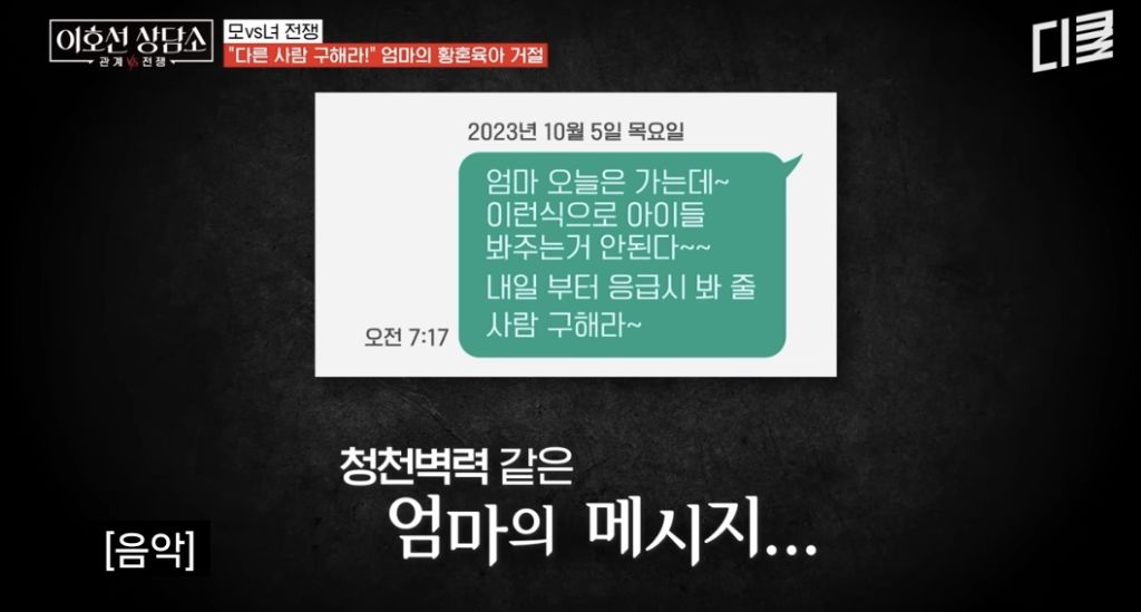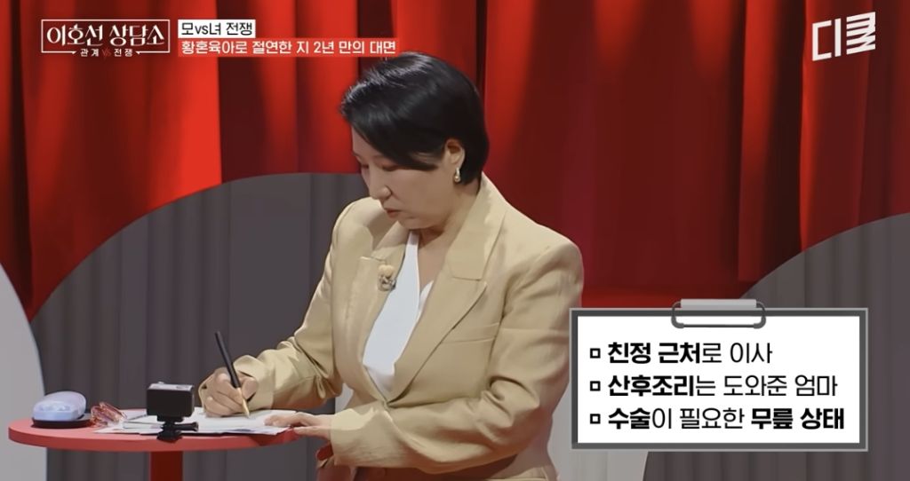 산후조리 기간에 자신의 일상이 우선인 엄마한테 서운했다고함