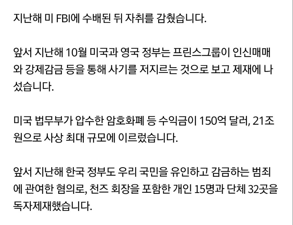 [스크랩] [기타]캄보디아 범죄 수괴 중국으로 끌려가는 모습 ㄷㄷ 작성자정동남|작성시간26.01.08|조회수65,014 목록 댓글 43 글자크기 작게가 글자크기 크게가 범죄수익 21조에 ..피해자는 셀 수 없을정도니.. 중국에서 어떻게 나올지 궁금하네요, 총살 엔딩일까요? 다음검색 스크랩 원문 : 이종격투기 현재 게시글 추가 기능 열기 북마크 공유하기 신고 센터로 신고 댓글 댓글 43 댓글쓰기 답글쓰기 댓글 리스트 작성자한복을입고 | 작성시간 26.01.09 총살 아깝다 살점하나하나 뜯어내야돼 작성자장병철 | 작성시간 26.01.09 죽겠닺 ㅒ.. 작성자맙소사푸바오 | 작성시간 26.01.09 돈 많아도 탈모 해결 못햇네 사형 작성자air. | 작성시간 26.01.09 좃됐네인생 작성자마조히즘근육단련 | 작성시간 26.01.09 중국에서 뭐 행동을 할까 ㅋㅋ 재산몰수는 하겠지만 댓글 전체보기