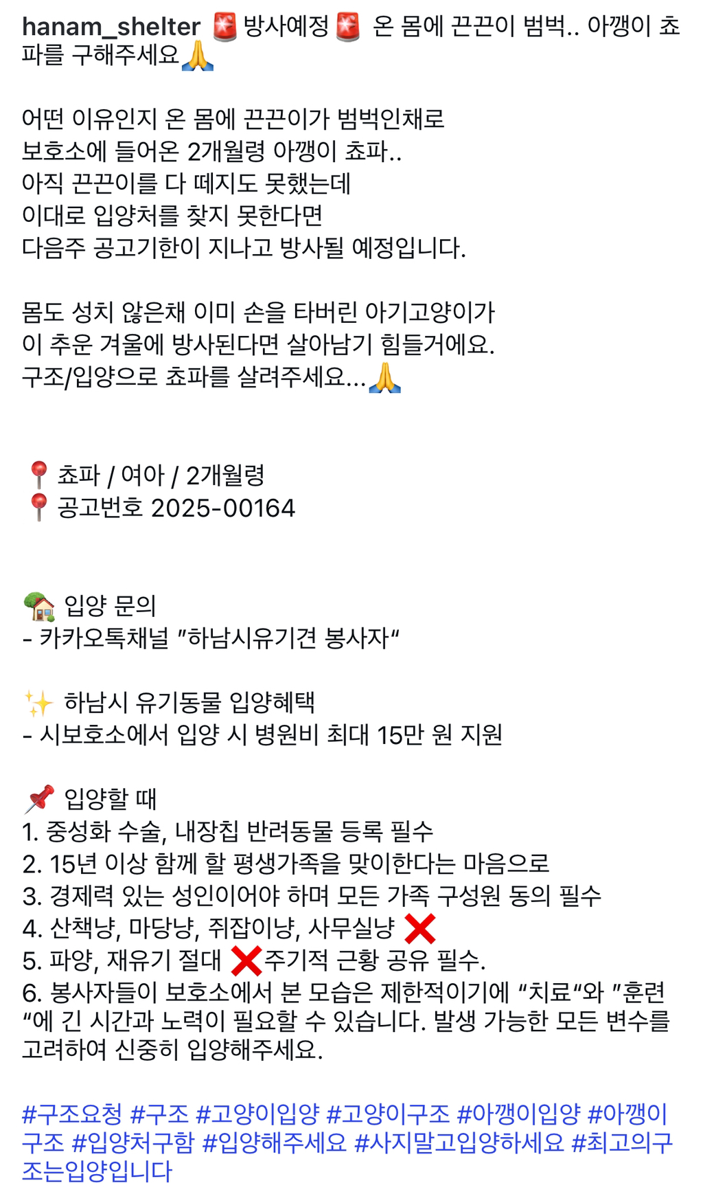 [기타]나 2개월 아깽이인데 공고기한 끝나면 추운겨울 방사예정이에요..(입양홍보)