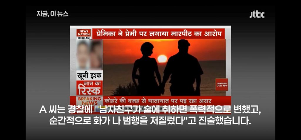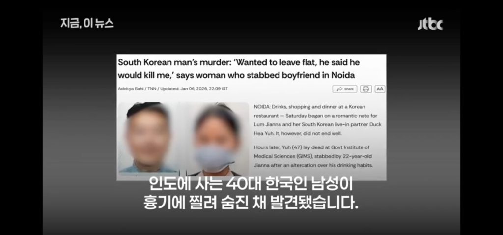 수도 뉴델리 인근의 한 아파트에서 22살 인도인 여성 A 씨가 함께 살던 47살 한국인 남성 B 씨를 흉기로 여러 차례 찔렀습니다.