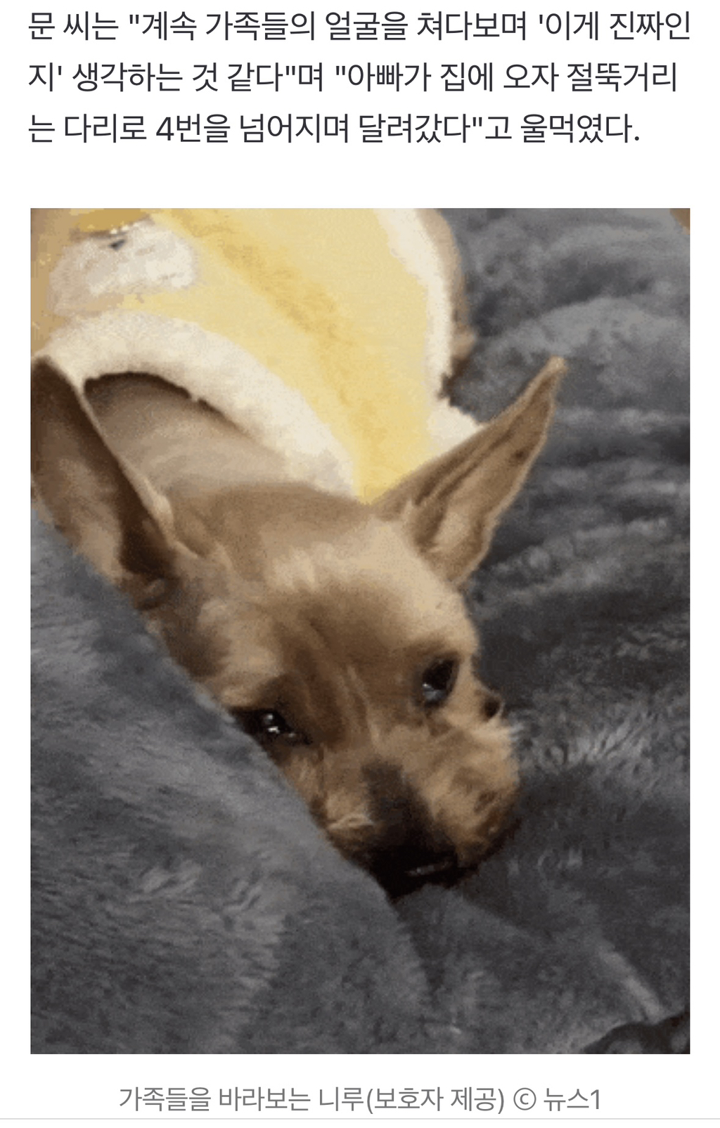 작성자가디가니하네 작성시간 26.01.09 6년이면... 개 인생에서 거의 50년 가까이 떨어져 살다가 만난거니까 첨엔못알아볼만함 ㅠㅠㅠㅠㅠㅠ 눈물나 앞으로 행복하기만 해줘