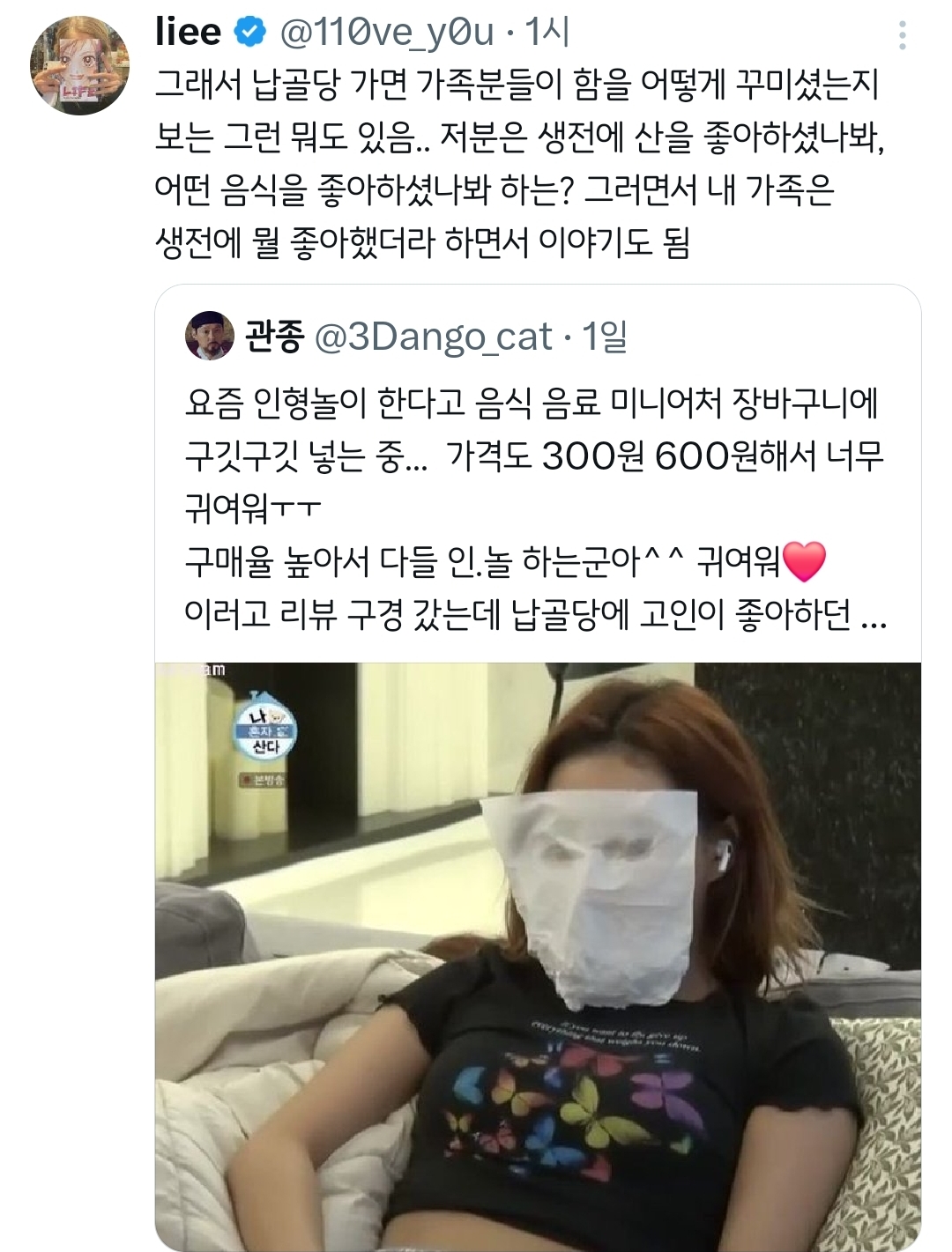 작성자맛집찾아 삼만리 작성시간 26.01.10 우리 할아버지도 담배넣음.. ㅠㅠ 근데 납골당 갈때마다 너무 어리거나 젊은 사람 있으면 슬퍼져..