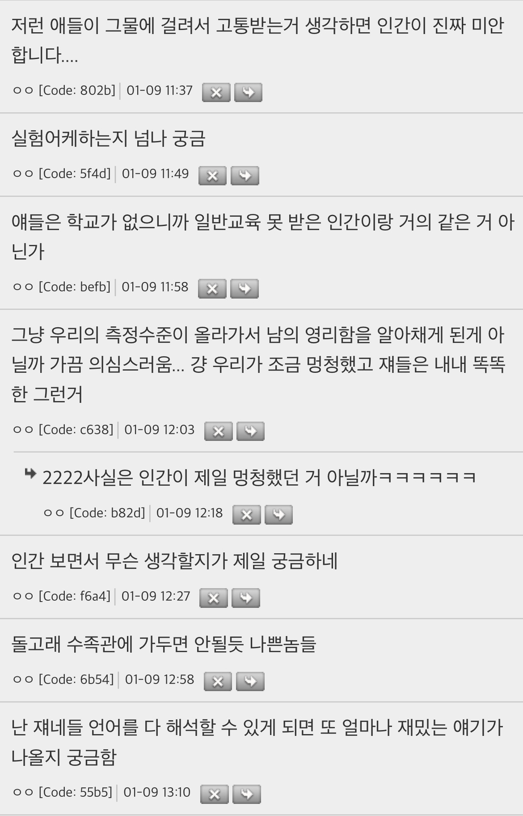 작성자뽀송뚱땅 작성시간 26.01.09 우리의 방식으로 지능테스트를 해서 더 낮게나온거 아냐? 쟤네도 쟤네방식대로 인간 지능 테스트해봤더니 인간지능은 돌고래 7세쯤으로 알고있을수도
