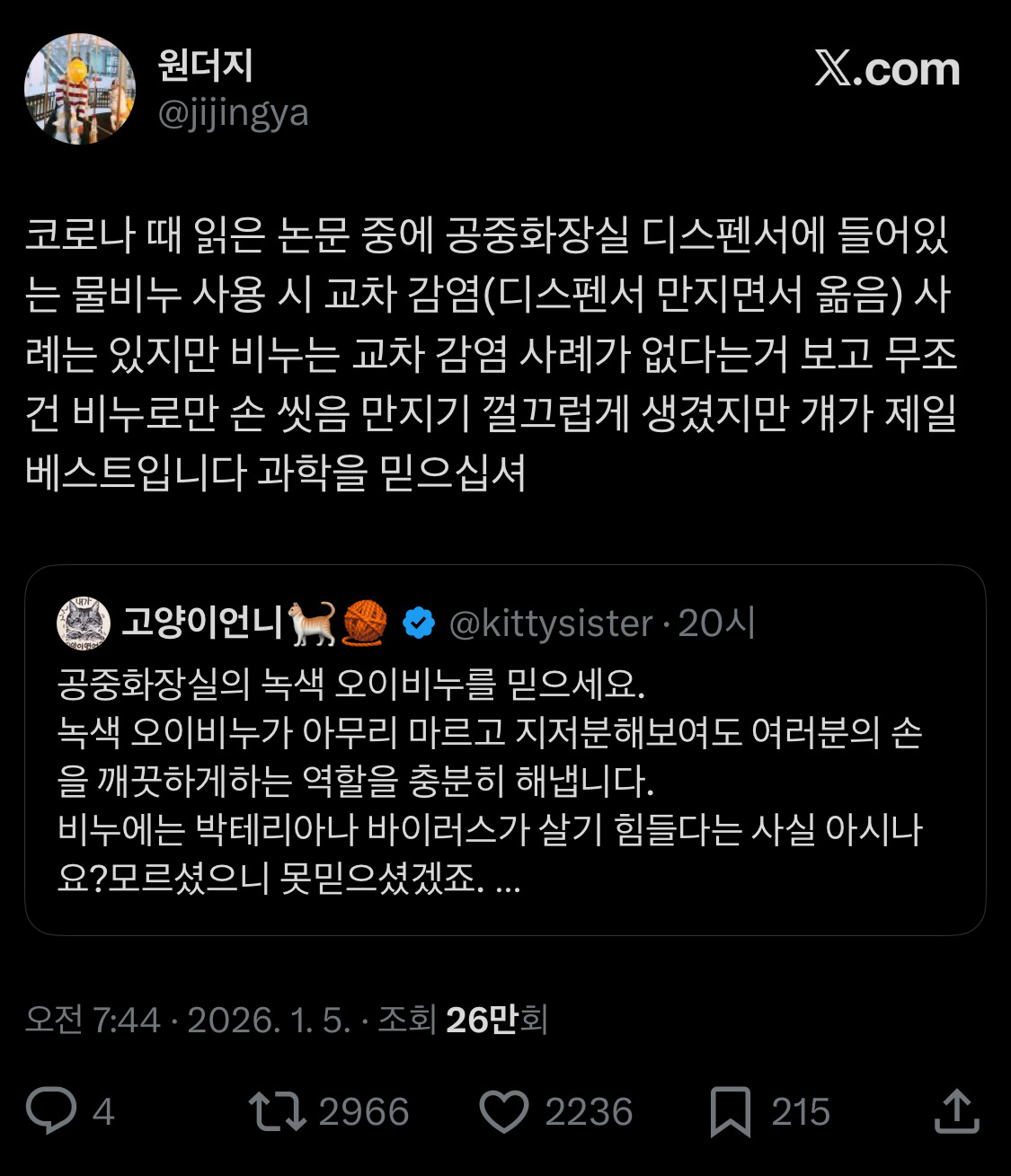 작성자기아 김선빈 작성시간 26.01.10 난 항상 비누도 세정제인데 세균이 어케 살겠음 내손이 더 더럽지 하고 쓰긴 했어ㅋㅋㅋㅋㅋ
