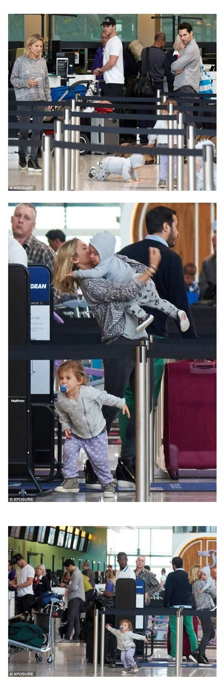 햄식이 출국 수속 받고 있는데 3단 분리 되는 크리스 햄스워스 아기들