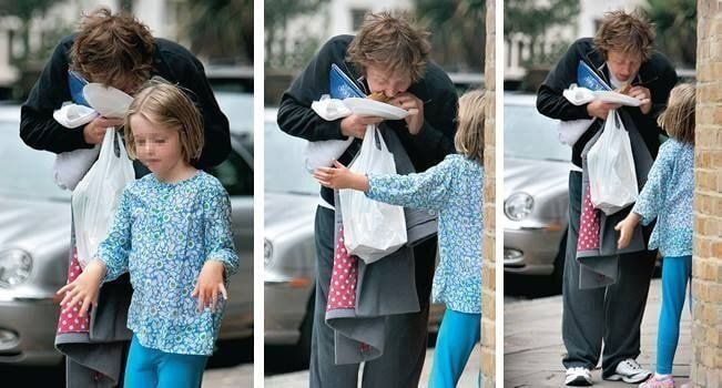 딸랑구 등교시키면서 허겁지겁 아침 배채우는 폴 매카트니